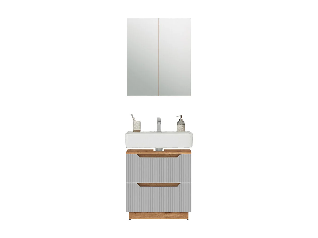 Meubles bain chêne/gris rayé 59.8x32x62.5 lotta