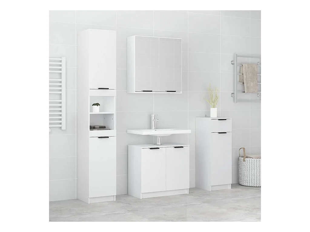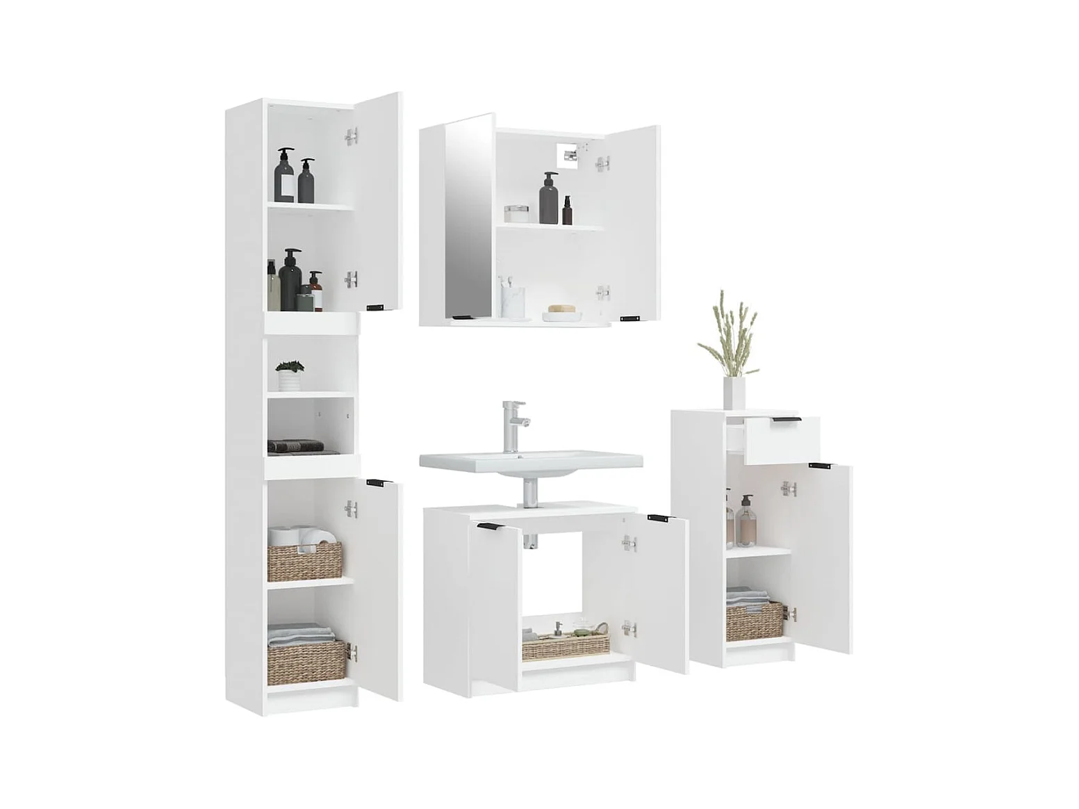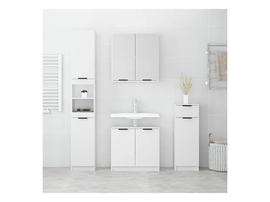 Meubles de salle de bain 4 pcs Blanc Bois d'ingénierie