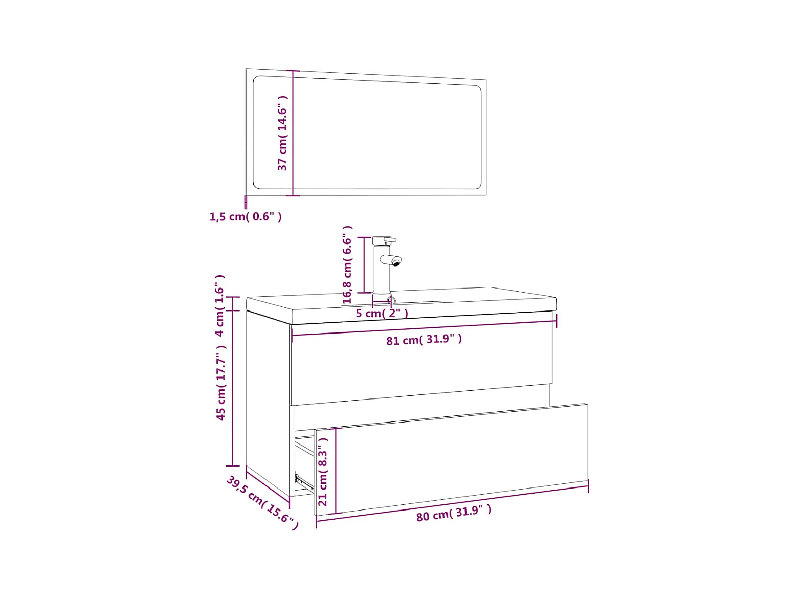 Meuble de salle de bain avec miroir chêne sonoma 80x38,5x45 cm