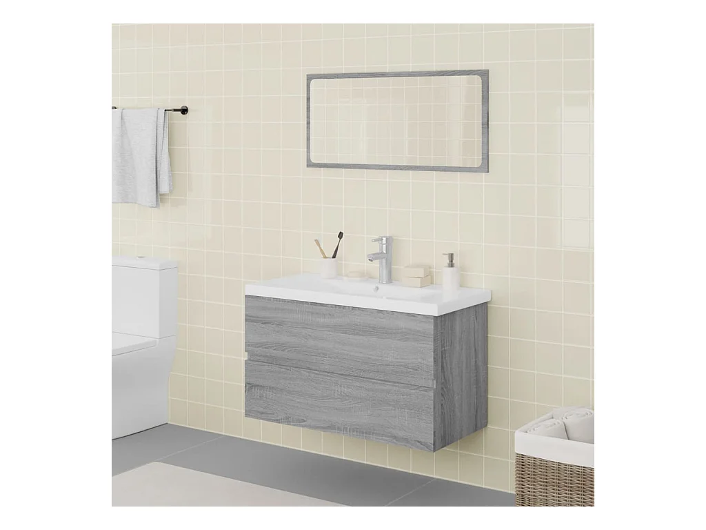 Armoire de bain et miroir Sonoma gris Bois d'ingénierie