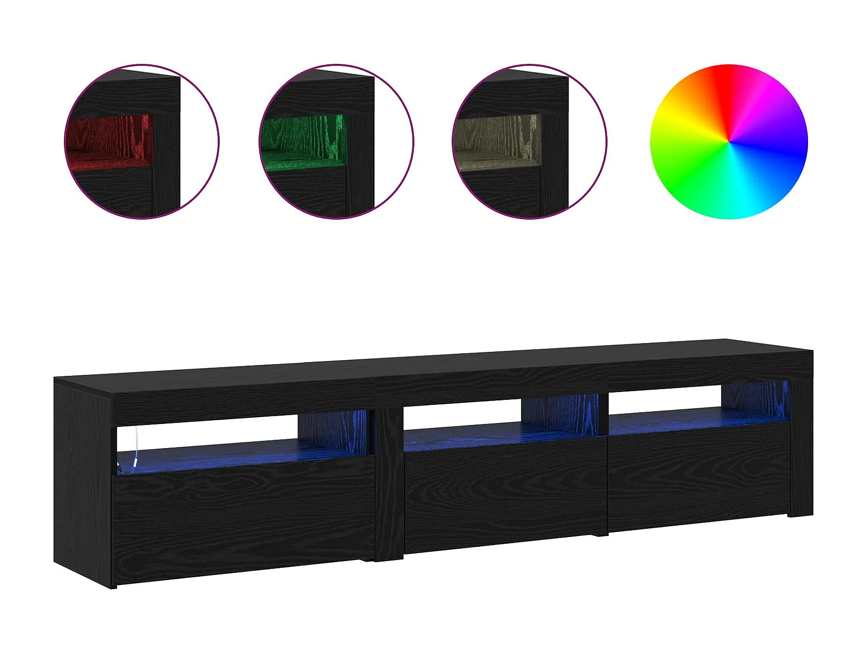 Ensemble de meubles pour salon 3 éléments avec LED – meuble TV 180 cm, vitrine et étagère, noir mat
