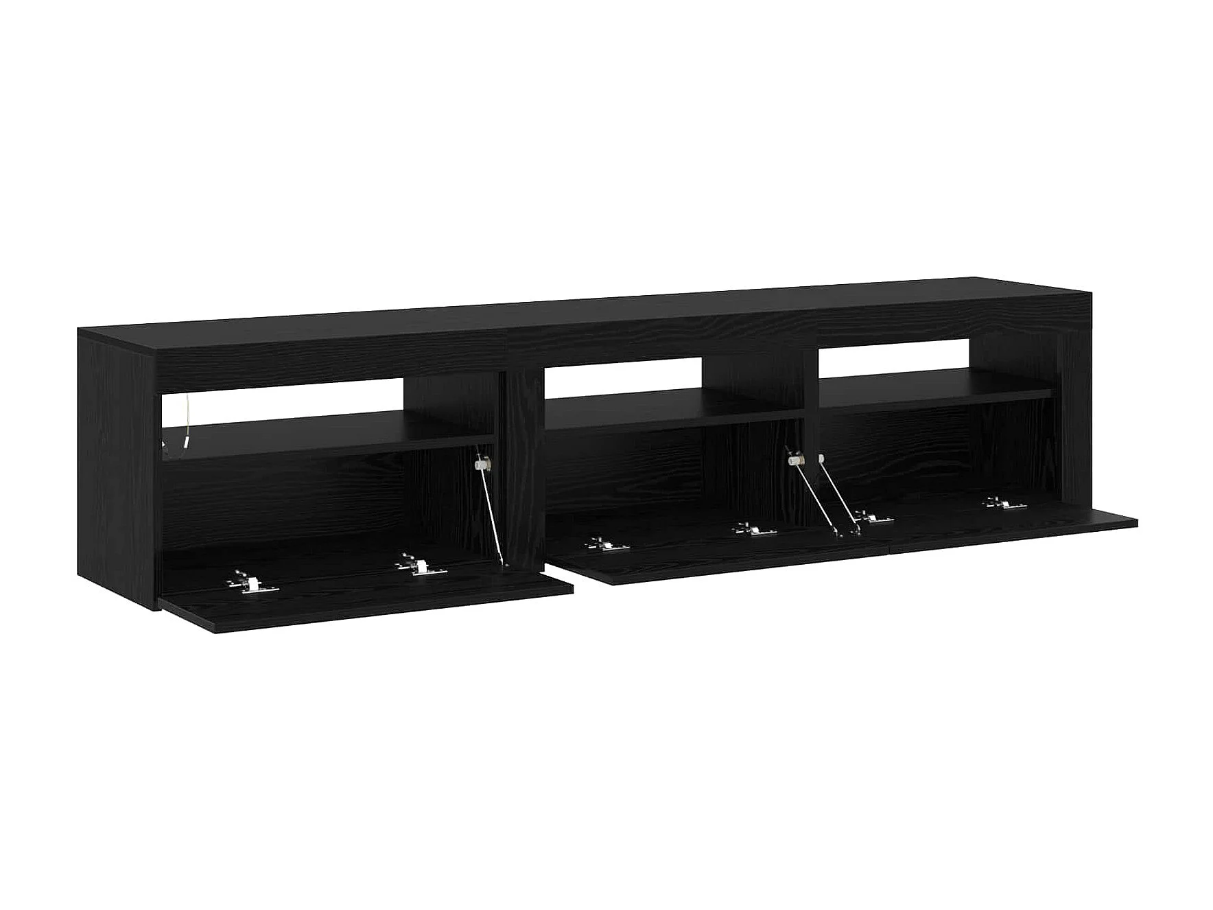 Ensemble de meubles pour salon avec LED 4 éléments – meuble TV 180 cm, 2 vitrines et étagère, composition murale debout ou suspendue noir mat