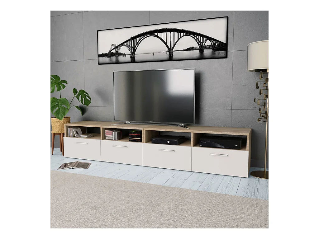 Meubles TV 2 pcs Bois d’ingénierie 95x35x36 cm Chêne et blanc
