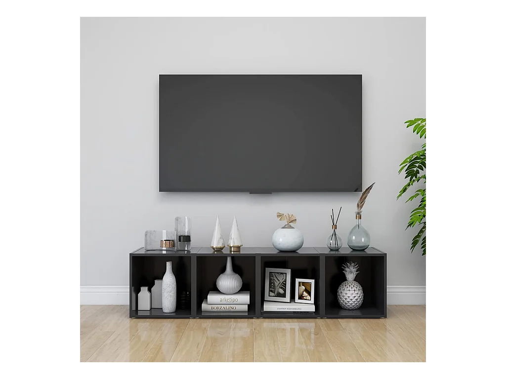 Meubles TV 4 pcs gris brillant 37x35x37 cm bois d’ingénierie