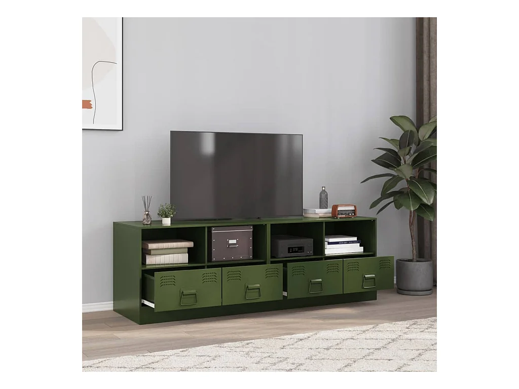 Meuble TV vert olive 67x39x44 cm acier FR19109