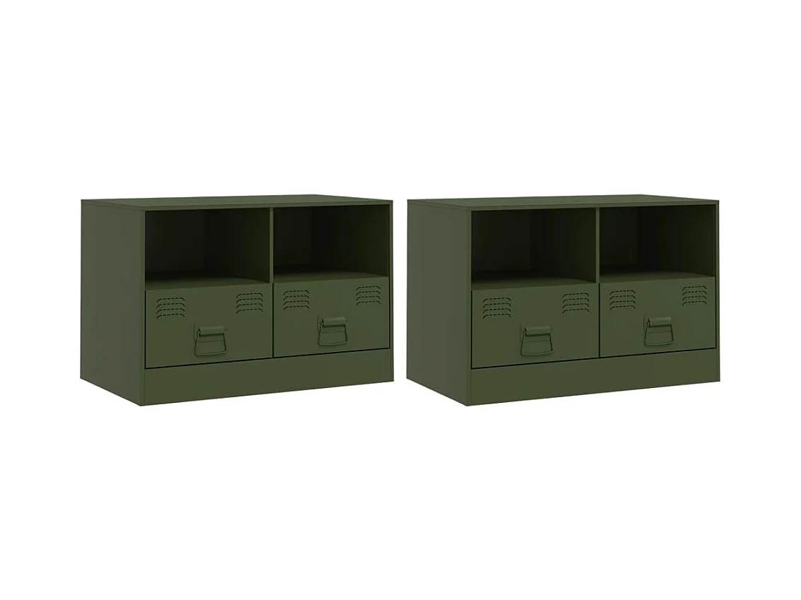 Meubles TV 2 pcs vert olive 67x39x44 cm acier FR50078