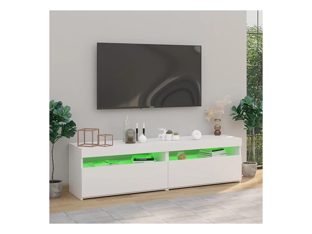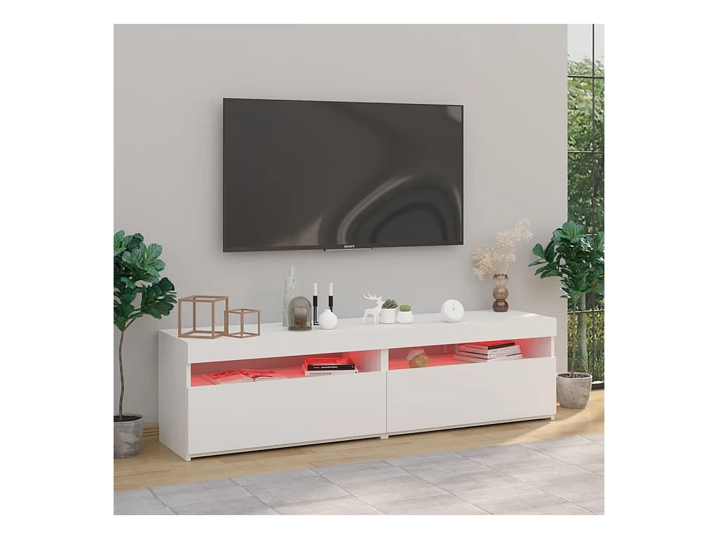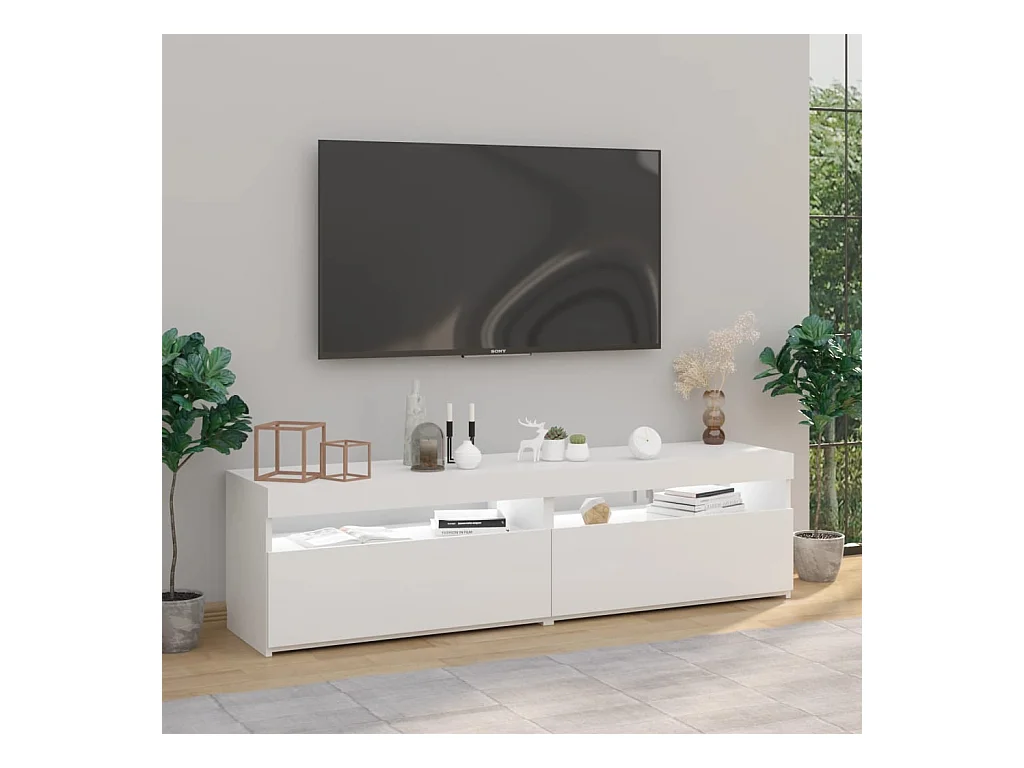Meuble TV avec lumières LED Blanc 180x35x40 cm