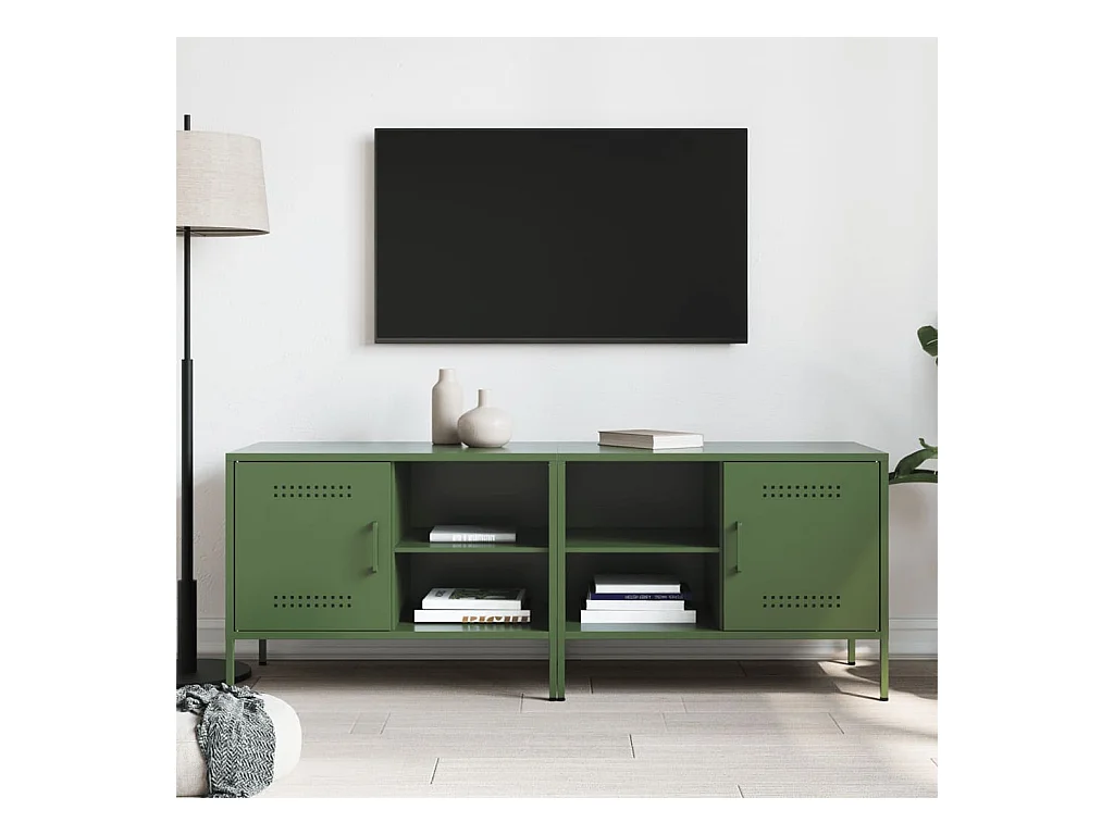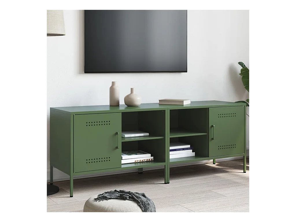 Meuble TV vert olive 100,5x39x50,5 cm acier laminé à froid FR549326