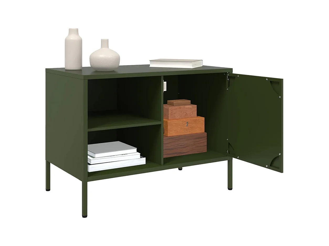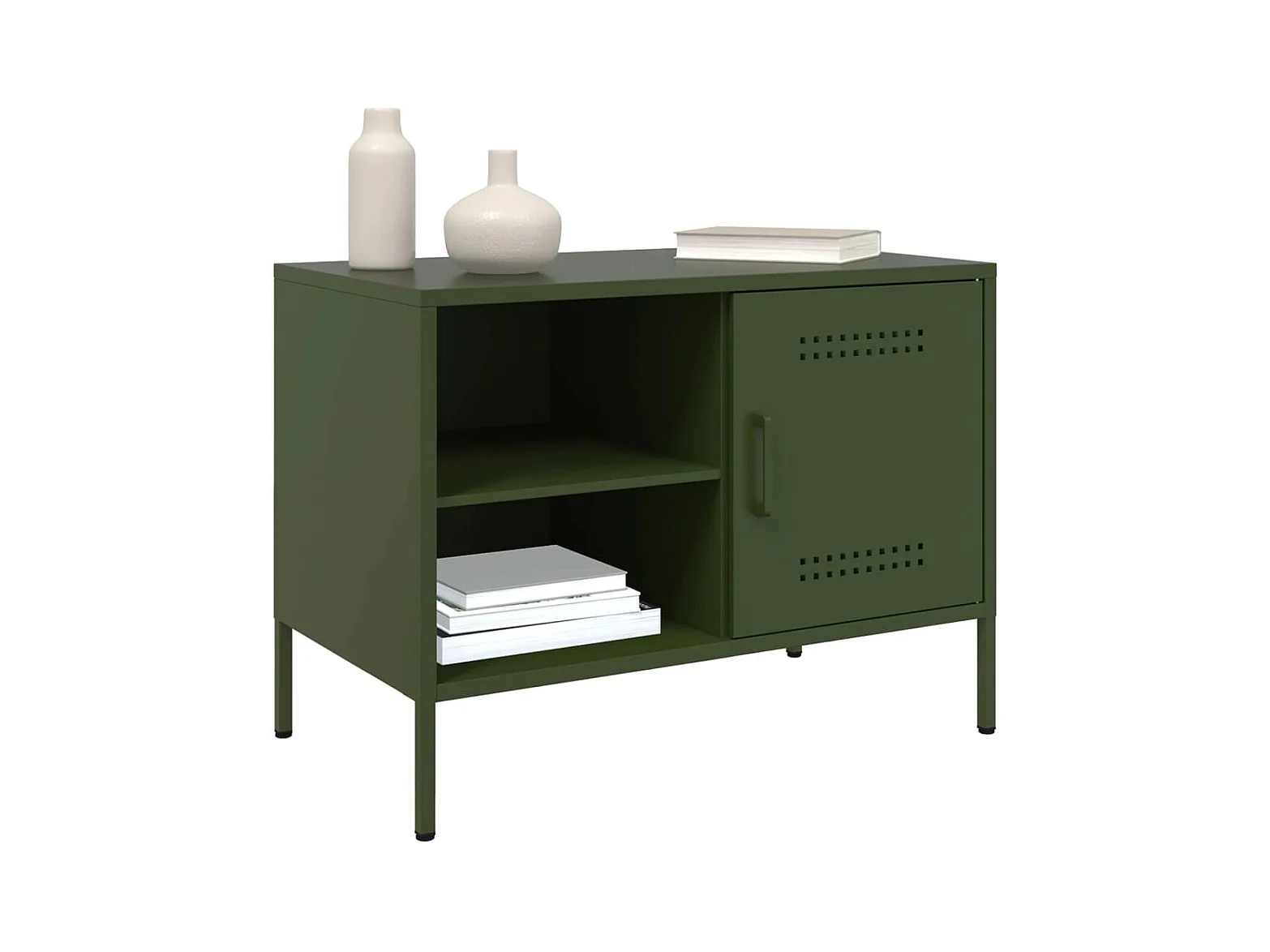 Meuble TV vert olive 68x39x50,5 cm acier FR872485