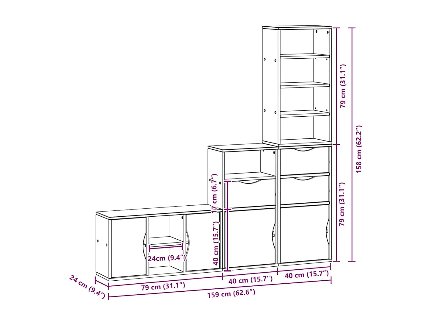 Meubles TV 4 pcs avec rangement ODDA bois de pin massif