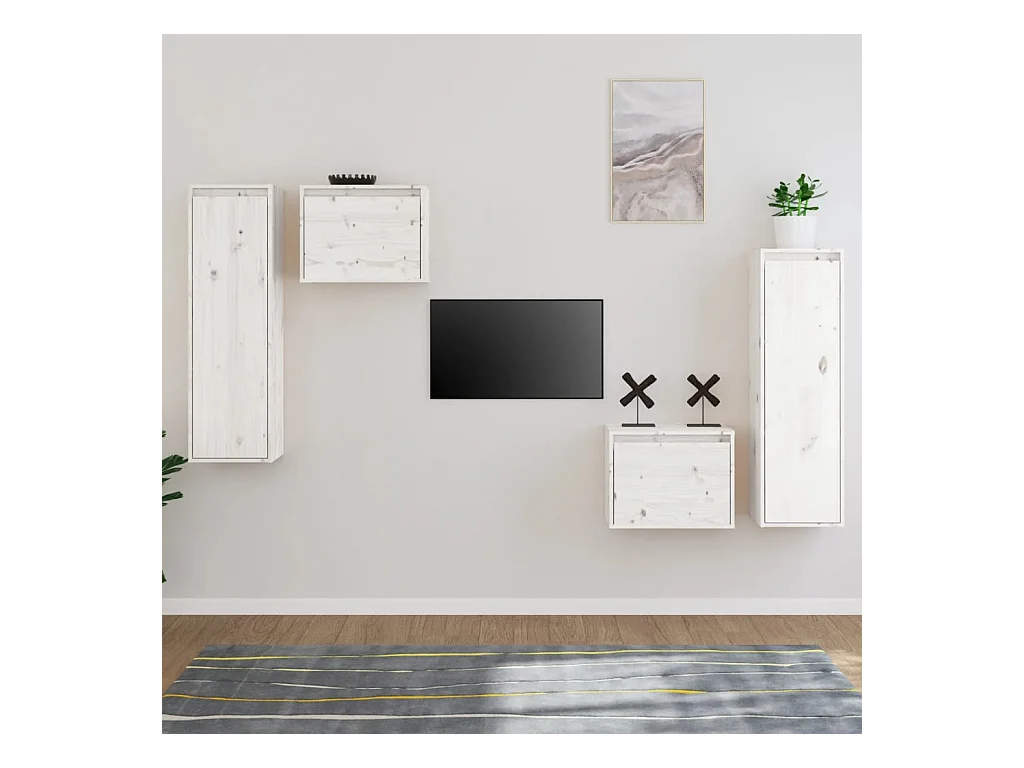 Meubles TV 4 pcs Blanc Bois massif de pin