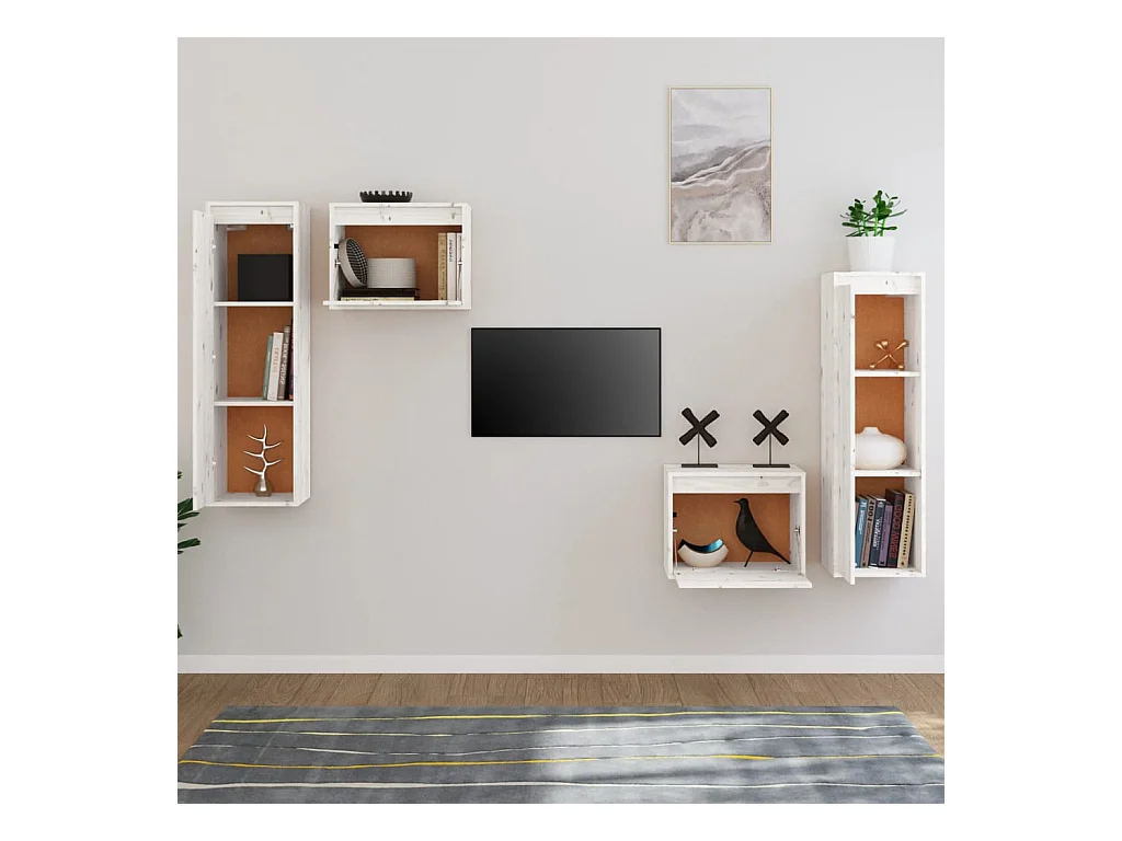 Meubles TV 5 pcs Blanc Bois massif de pin