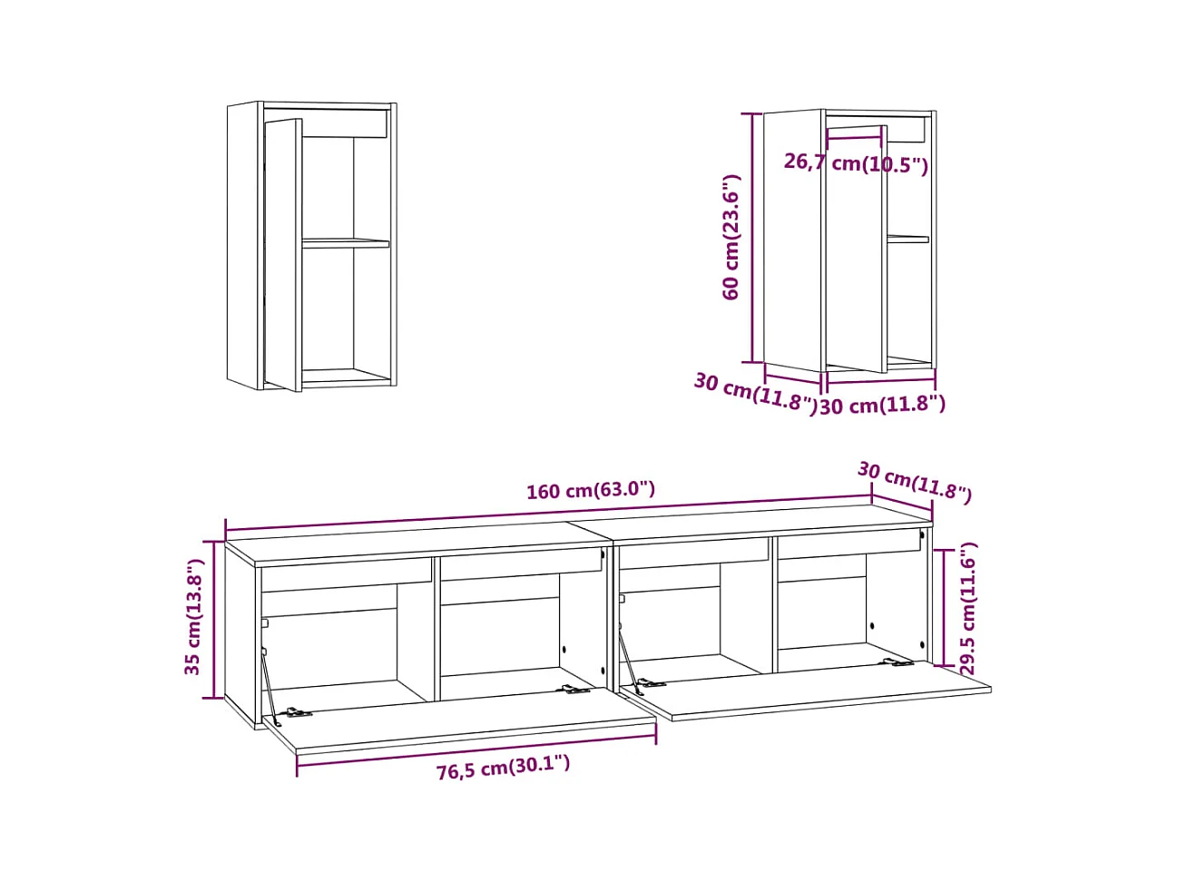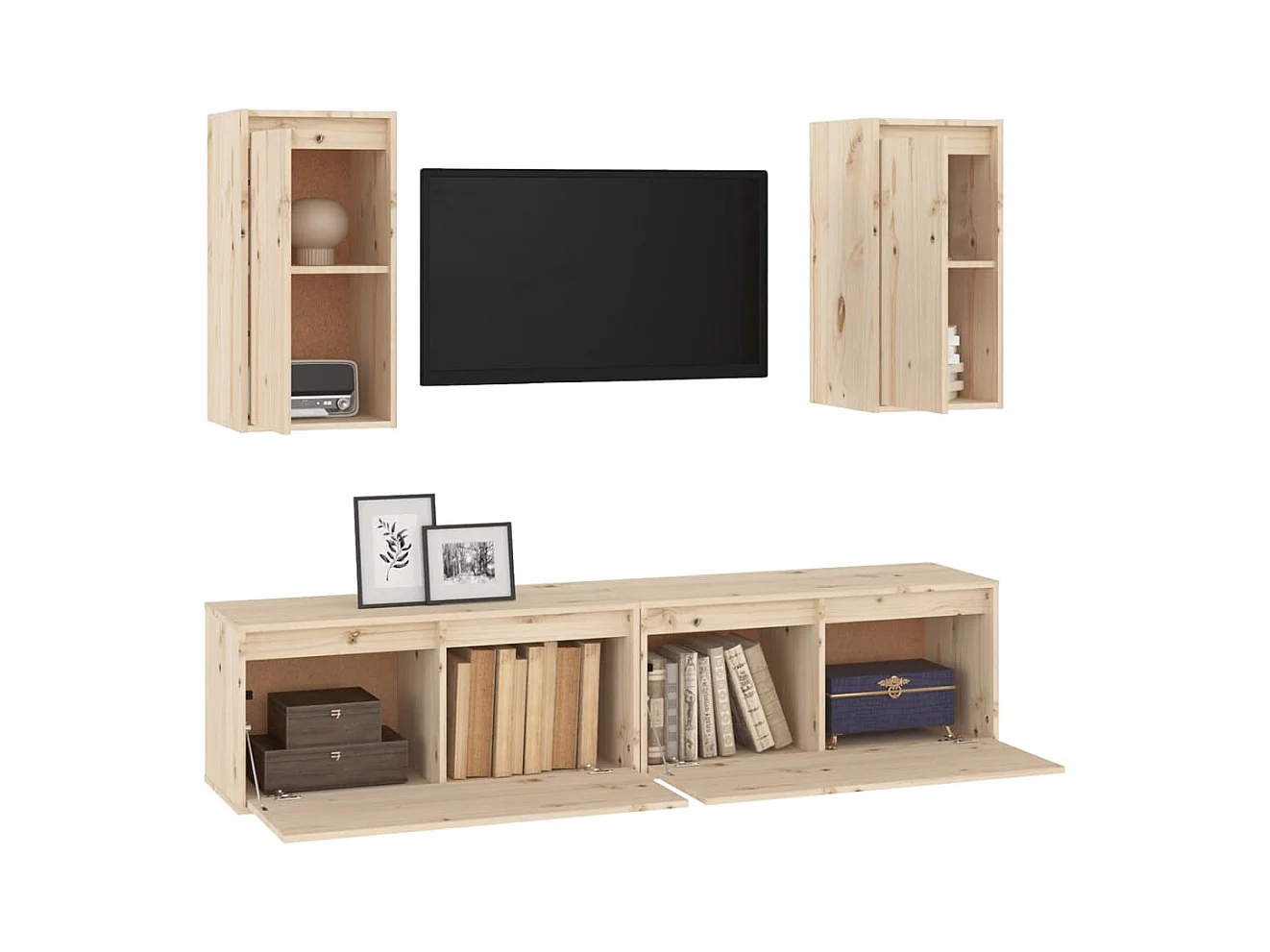 Meubles TV 4 pcs Marron miel Bois massif de pin
