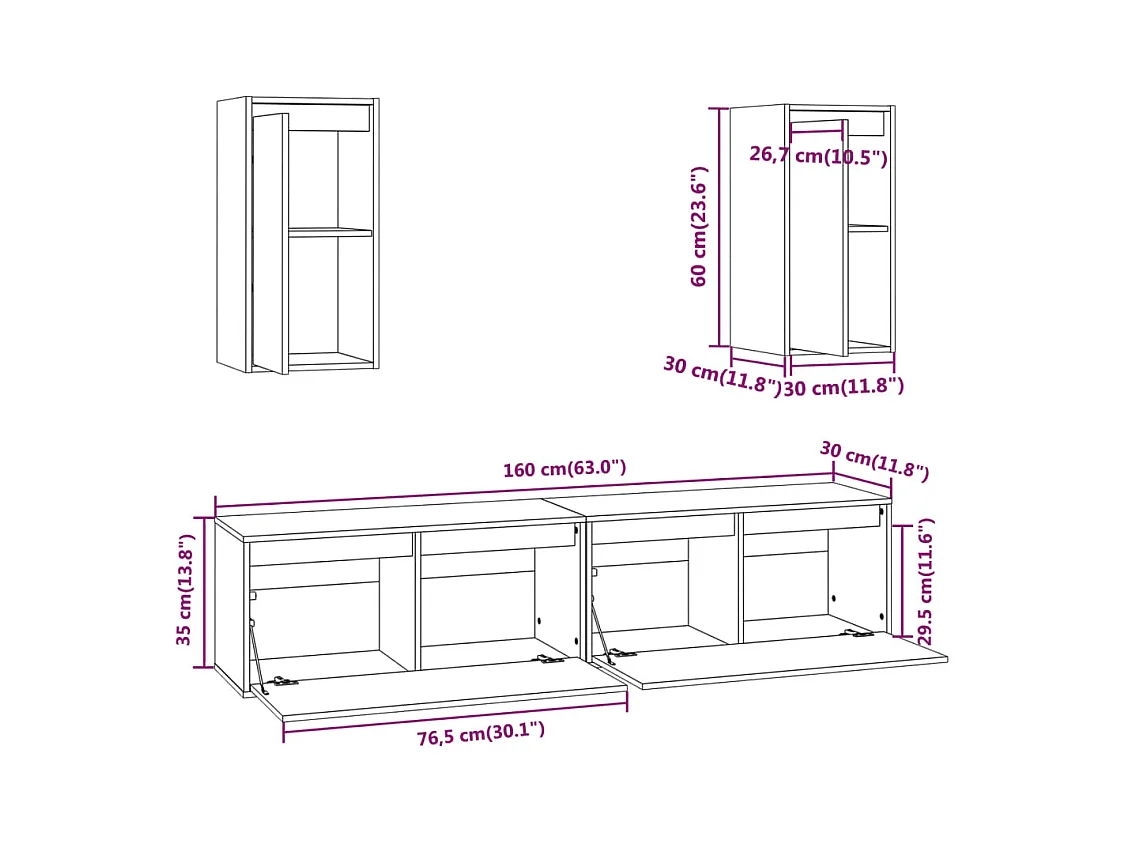 Meubles TV 4 pcs Chêne sonoma 80x30x30 cm Bois d'ingénierie