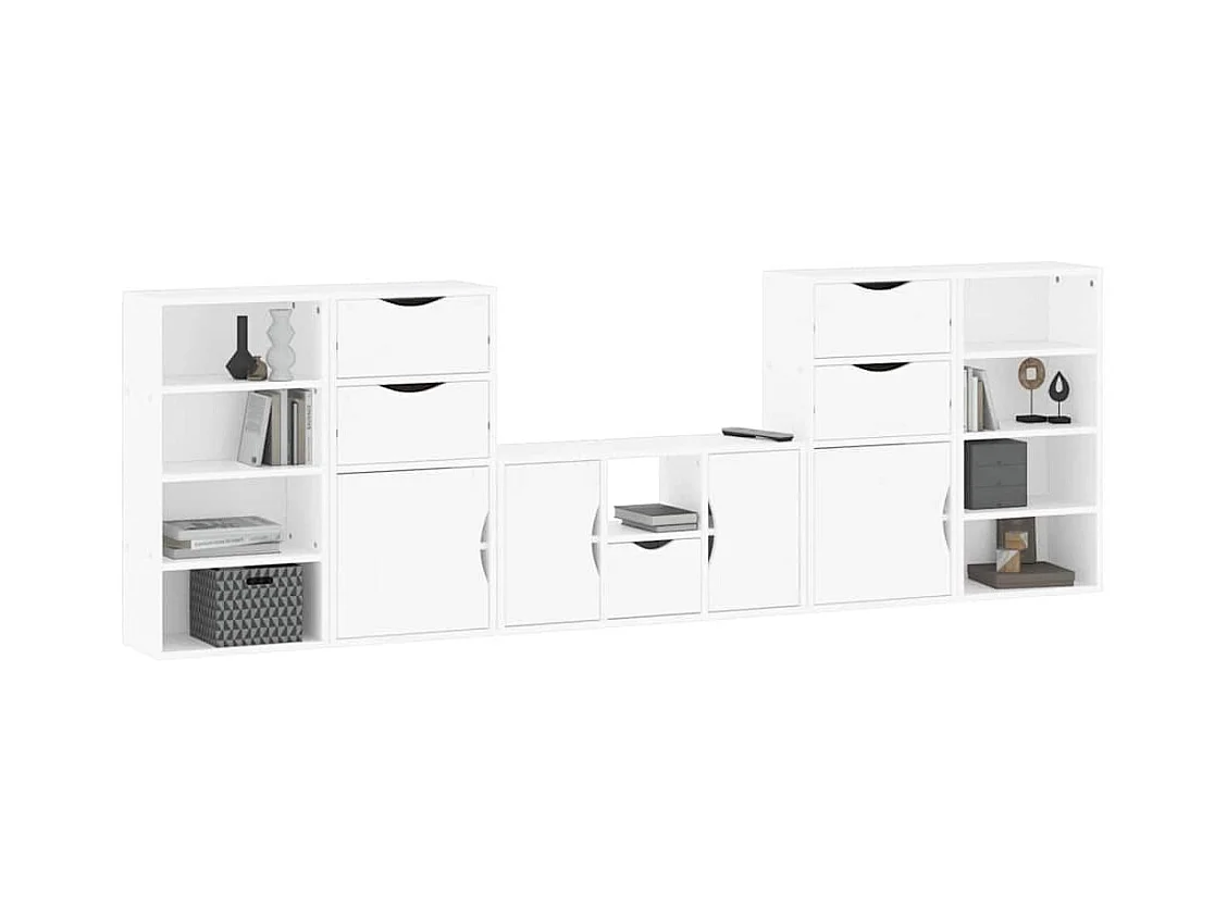 Meubles TV 5 pcs avec rangement ODDA blanc bois de pin massif
