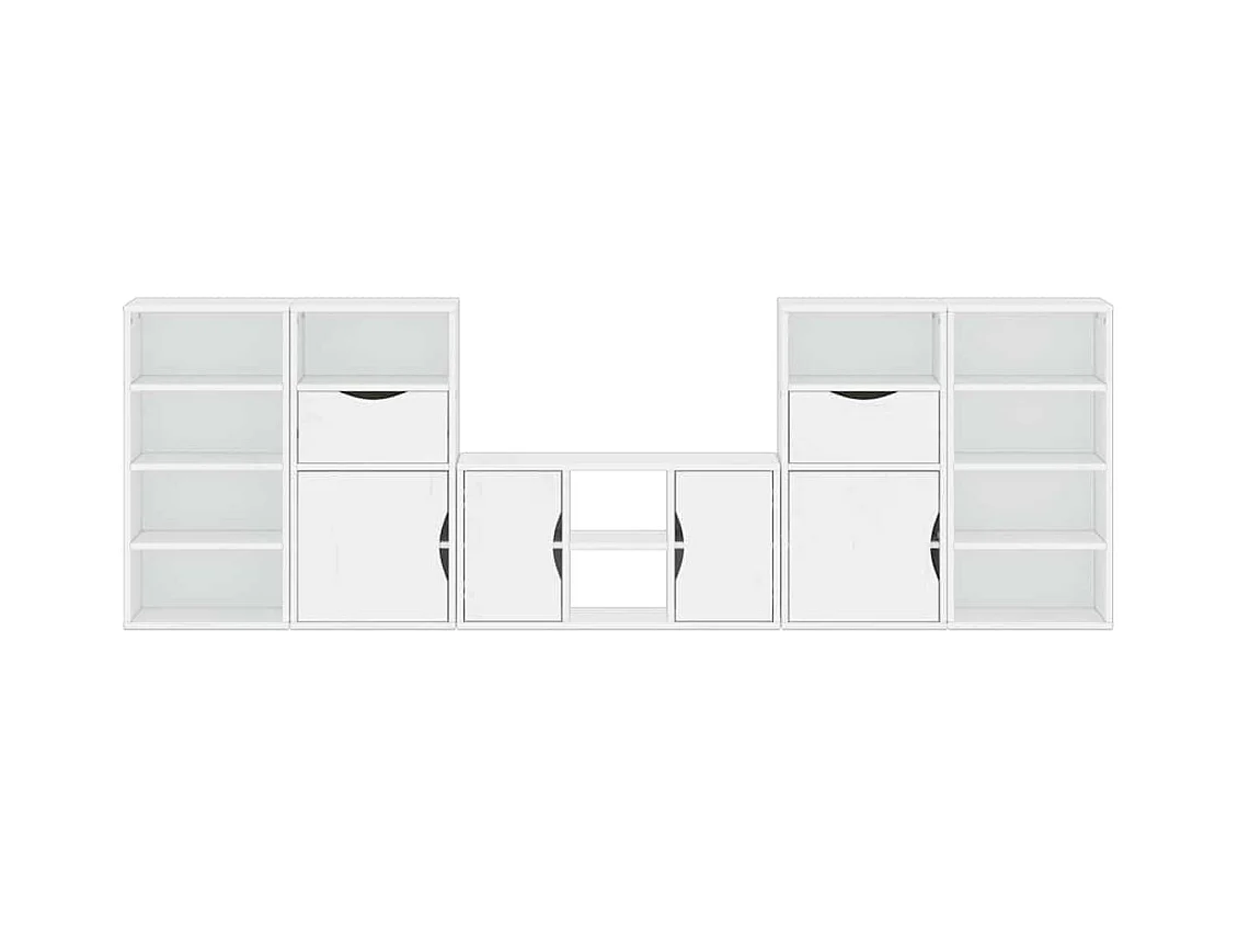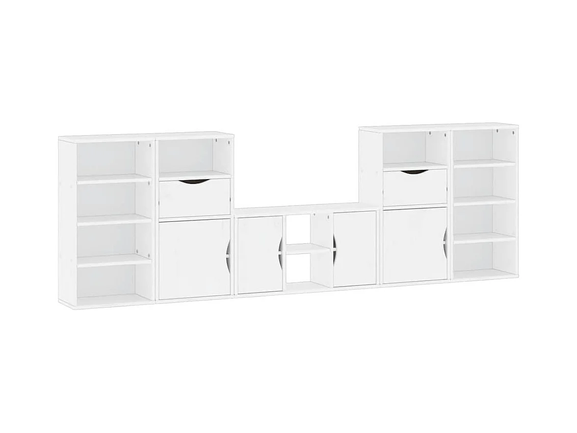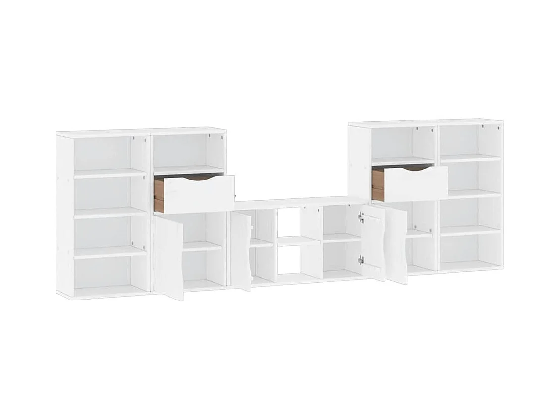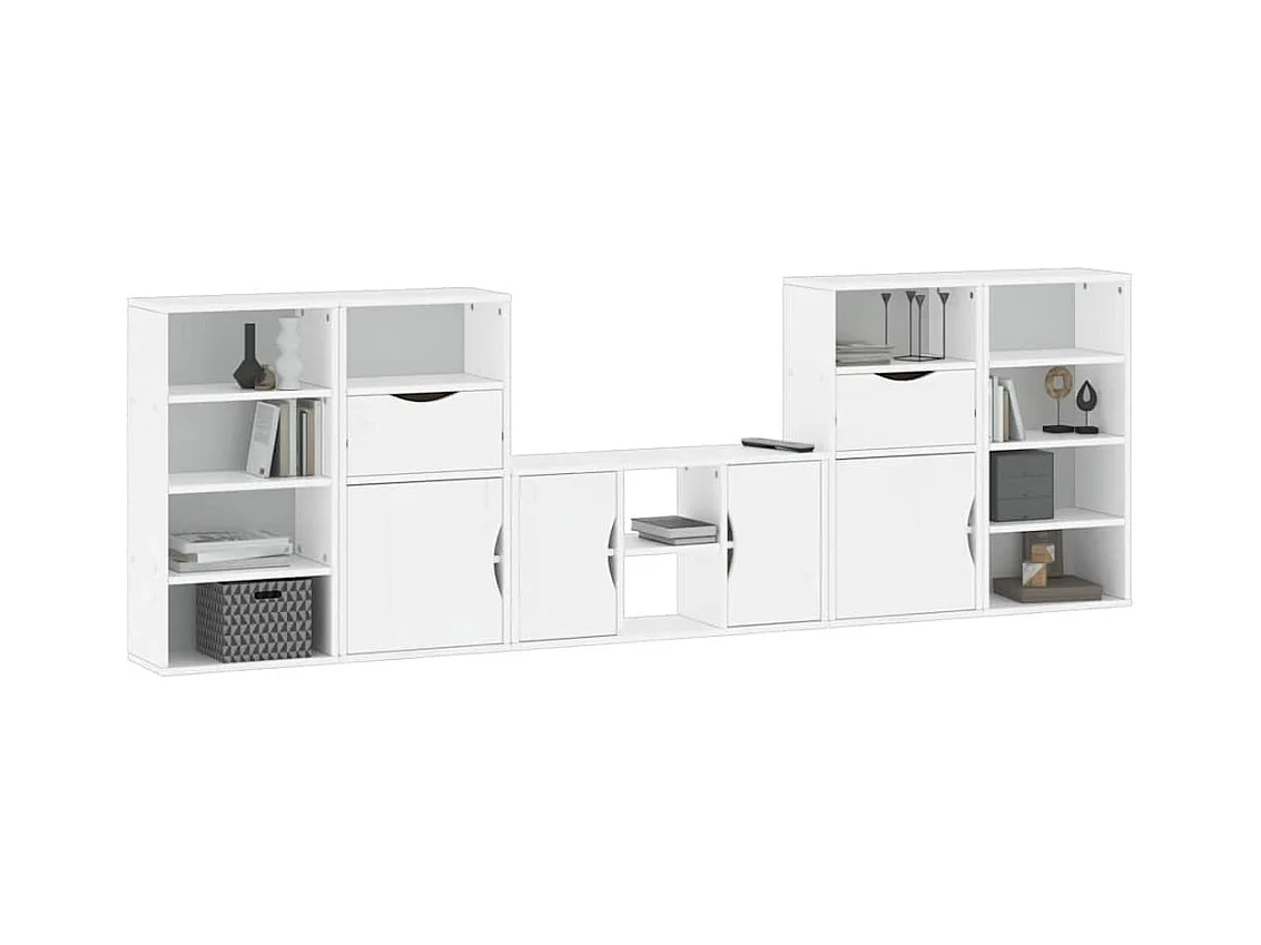 Meubles TV 5 pcs avec rangement ODDA blanc bois de pin massif