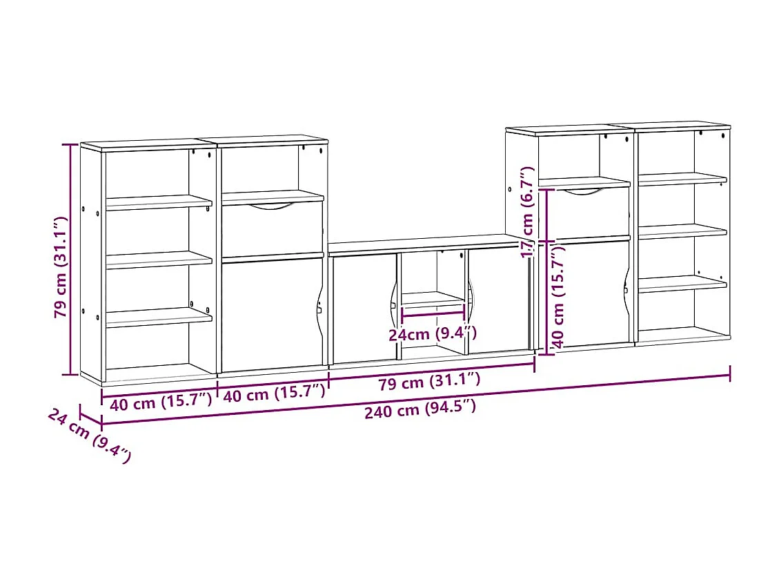Meubles TV 5 pcs avec rangement ODDA bois de pin massif