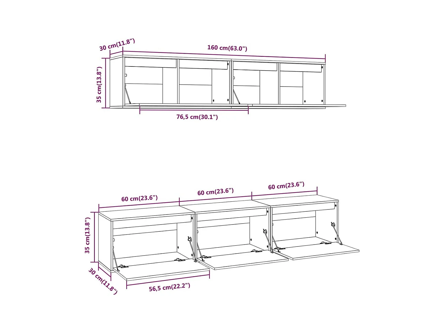 Meubles TV suspendus 2 pcs Blanc 60x30x30 cm