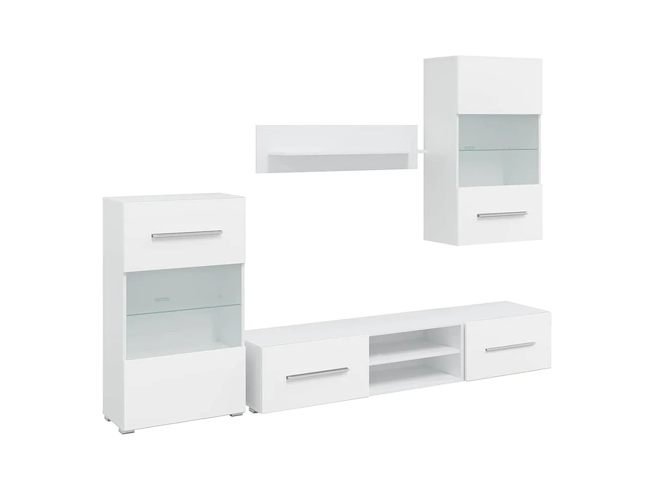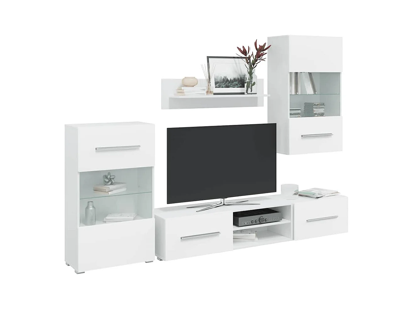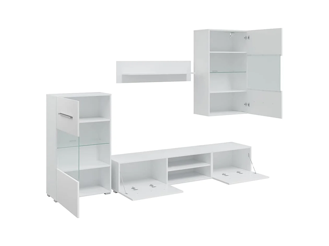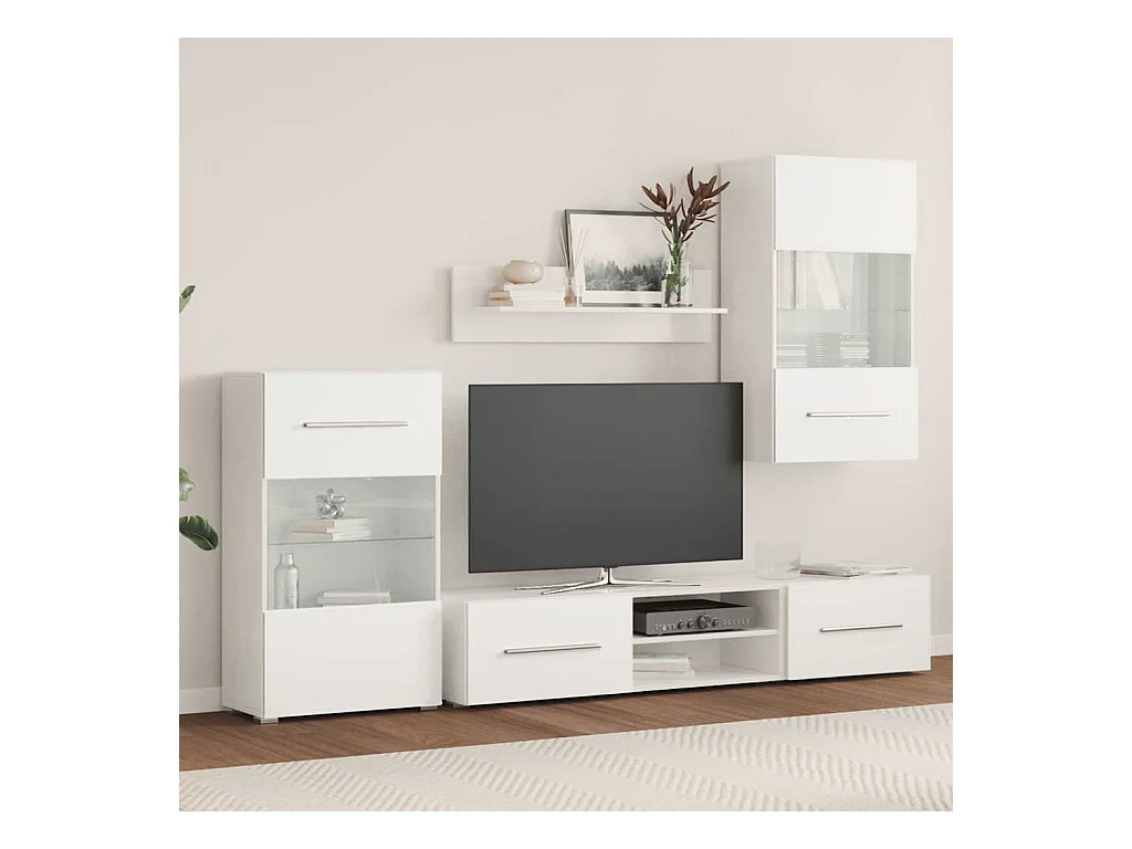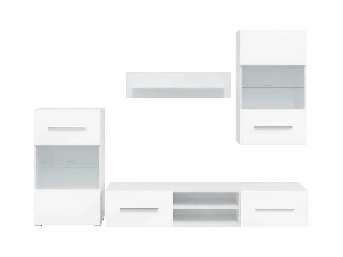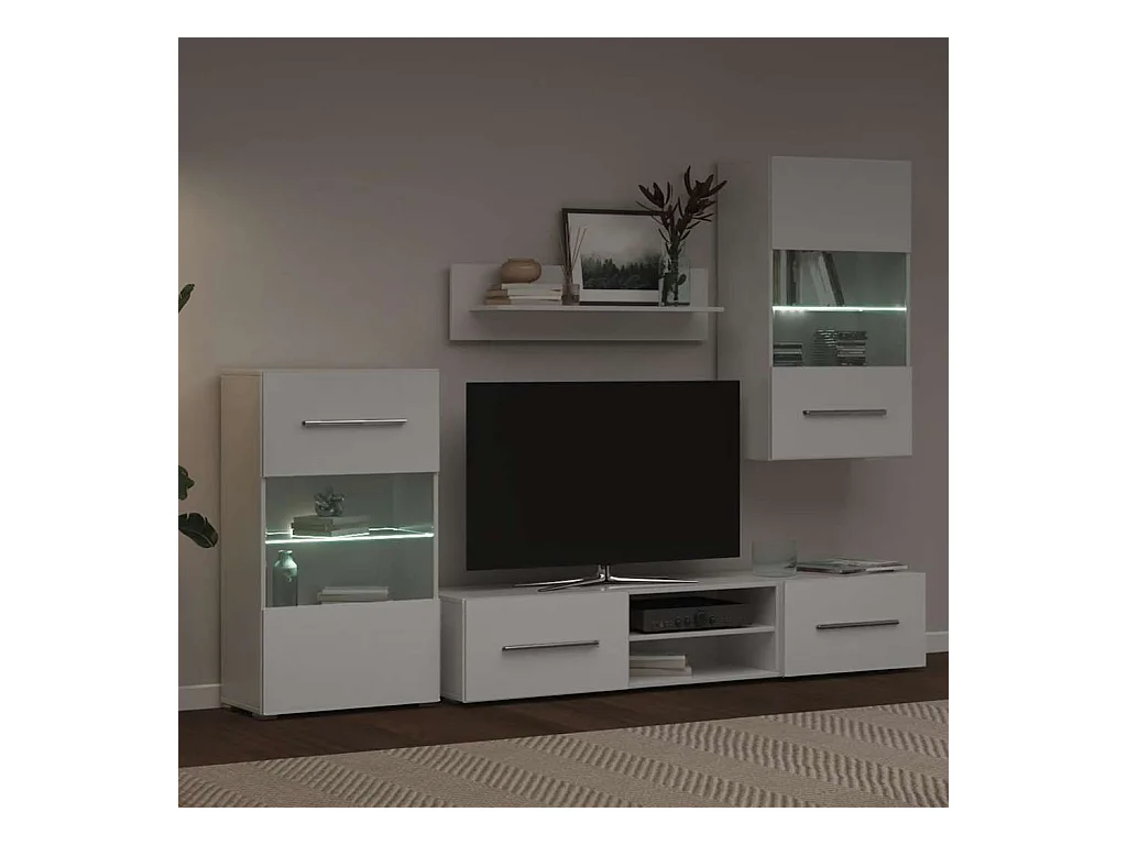 Meubles TV 5 pièces avec lumière LED blanc mat bois d'ingénierie