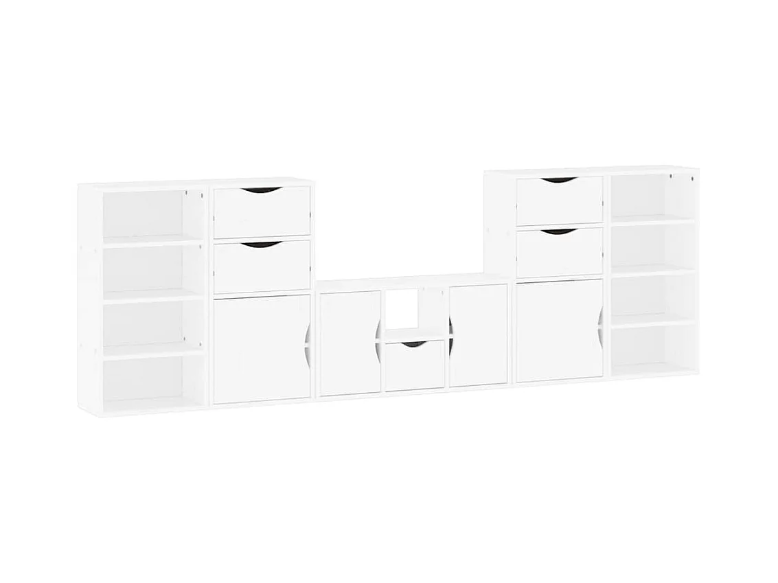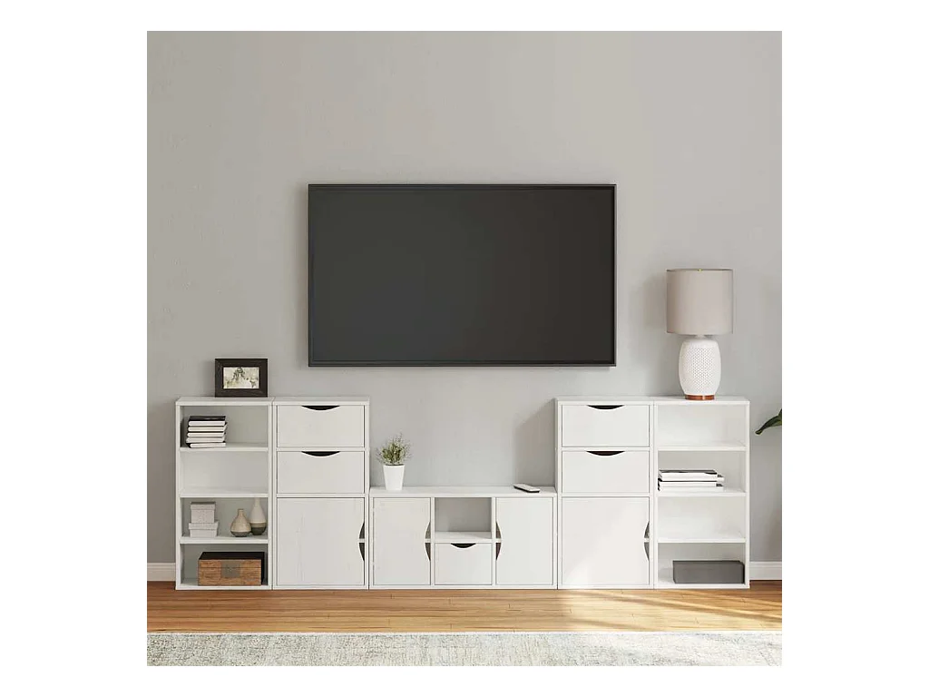 Meubles TV 5 pièces avec rangement ODDA blanc bois de pin massif