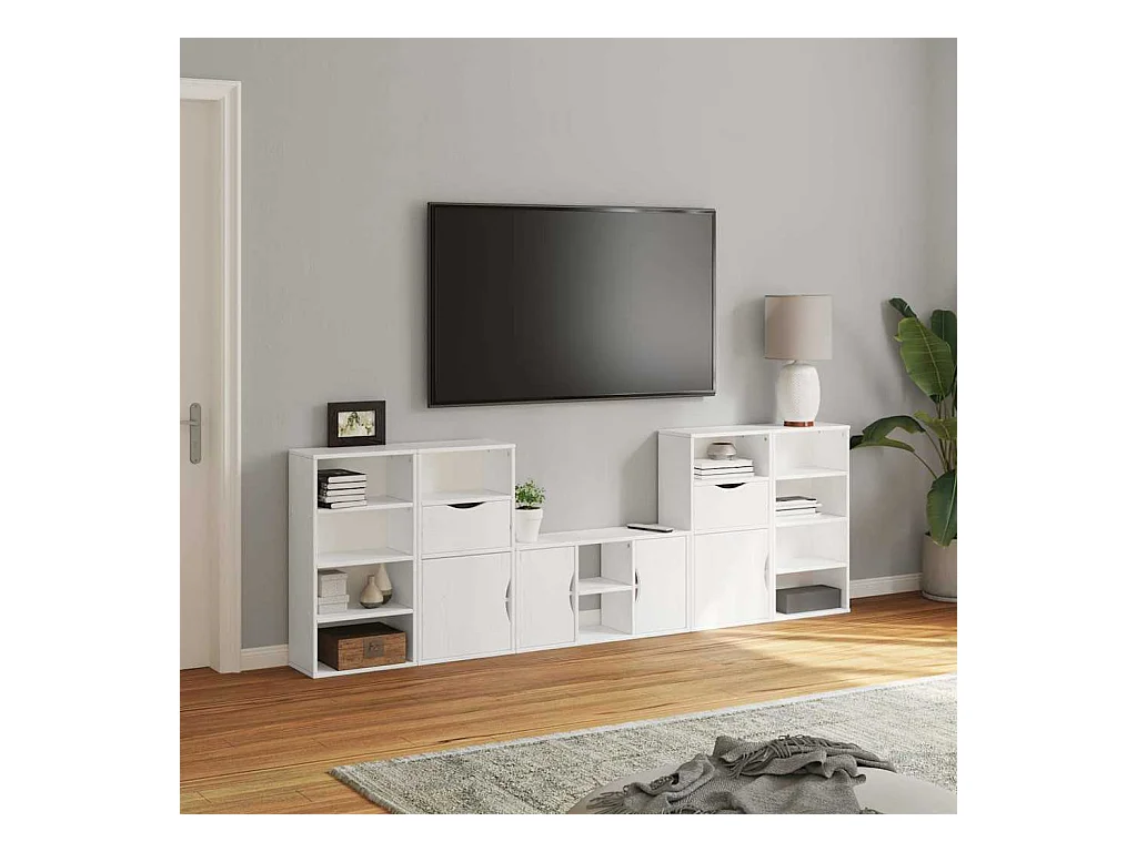 Meubles TV 5 pièces avec rangement ODDA blanc bois de pin massif