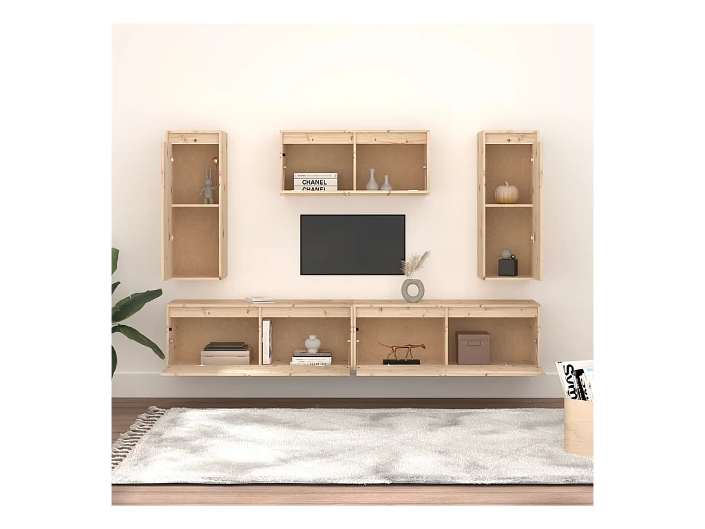 Meubles TV 3 pièces Marron miel Bois massif de pin