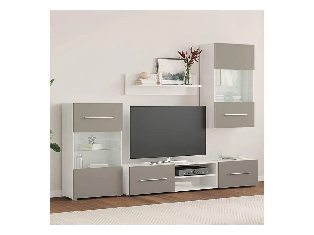 Meubles TV avec lumière LED 5 pièces gris pierre bois d'ingénierie