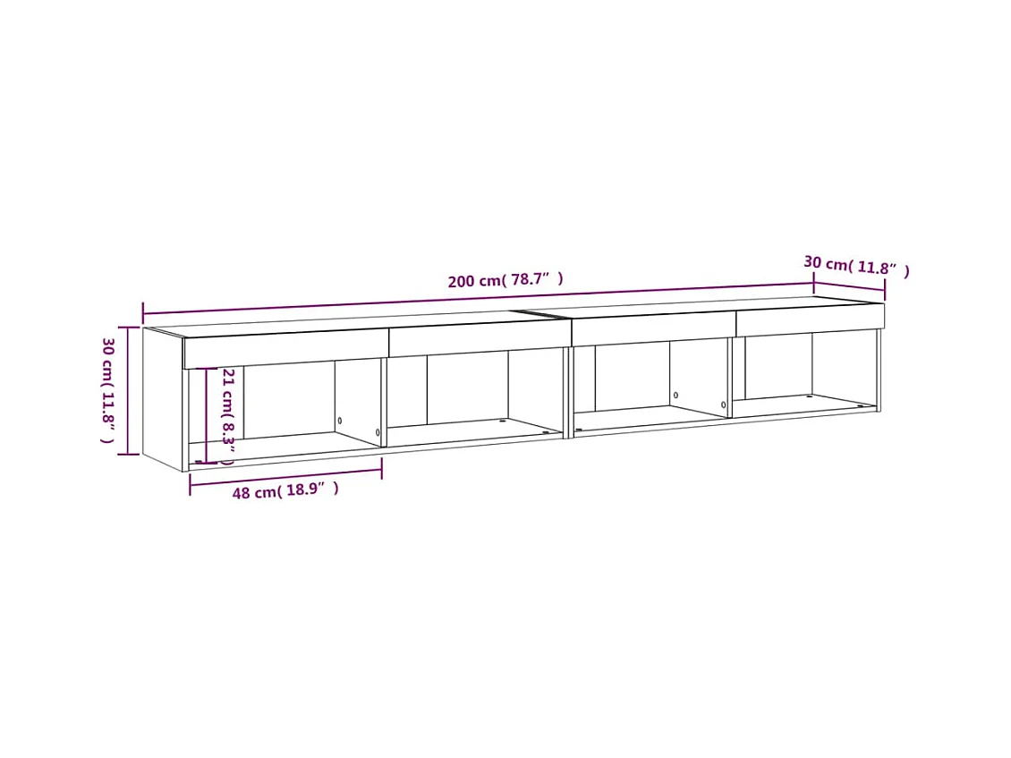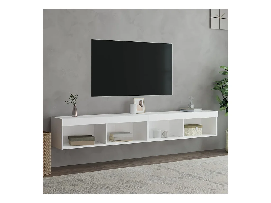 Meubles TV avec lumières LED 2 pcs blanc 100x30x30 cm
