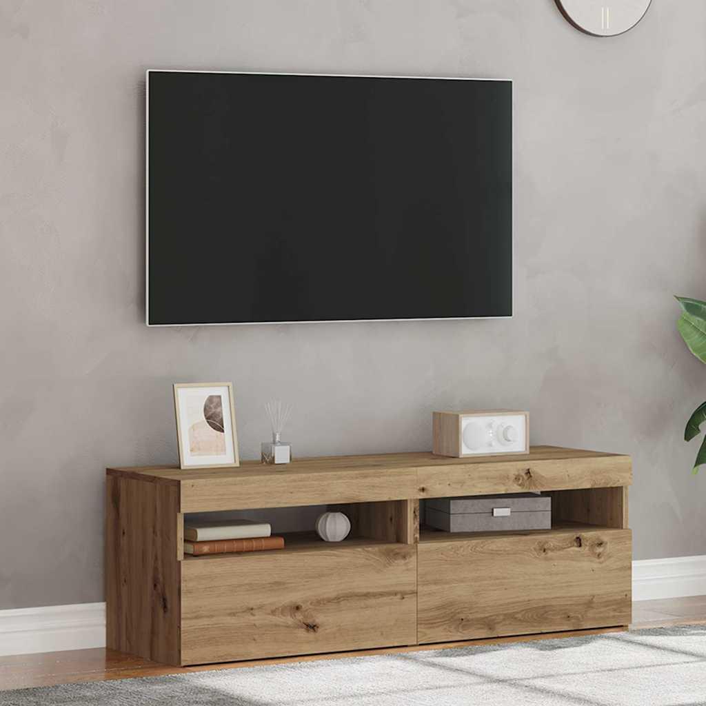 Meubles TV avec lumières LED 2 pcs chêne artisanal