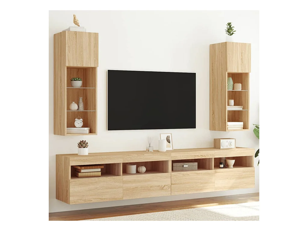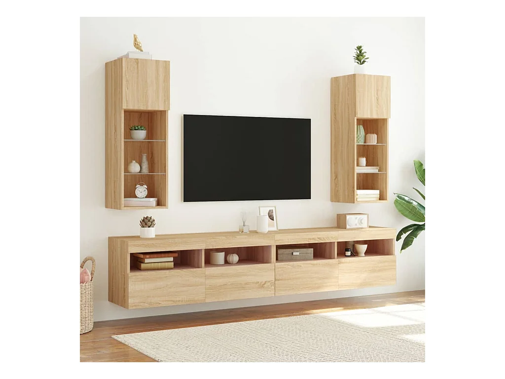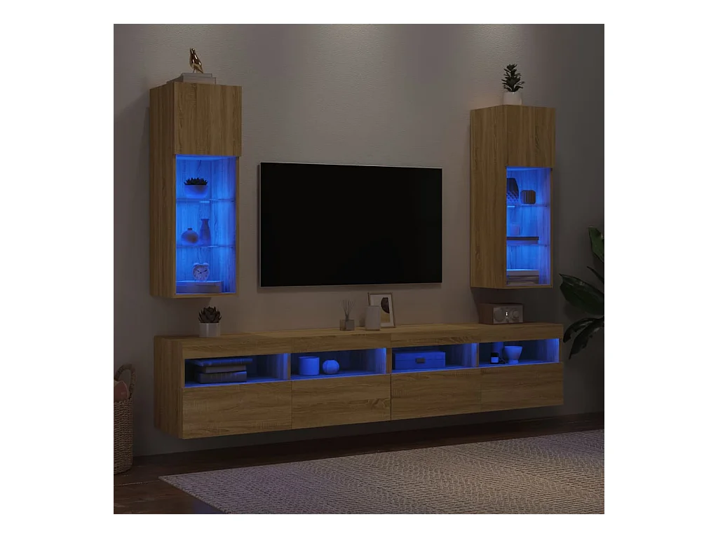Meuble TV muraux 4 pcs avec lumières LED chêne sonoma