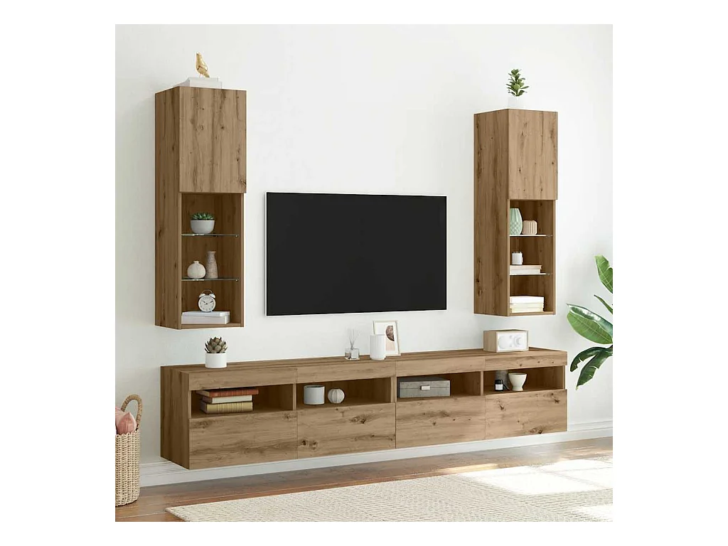 Unités murales TV avec LED 4 pcs chêne sonoma bois d'ingénierie