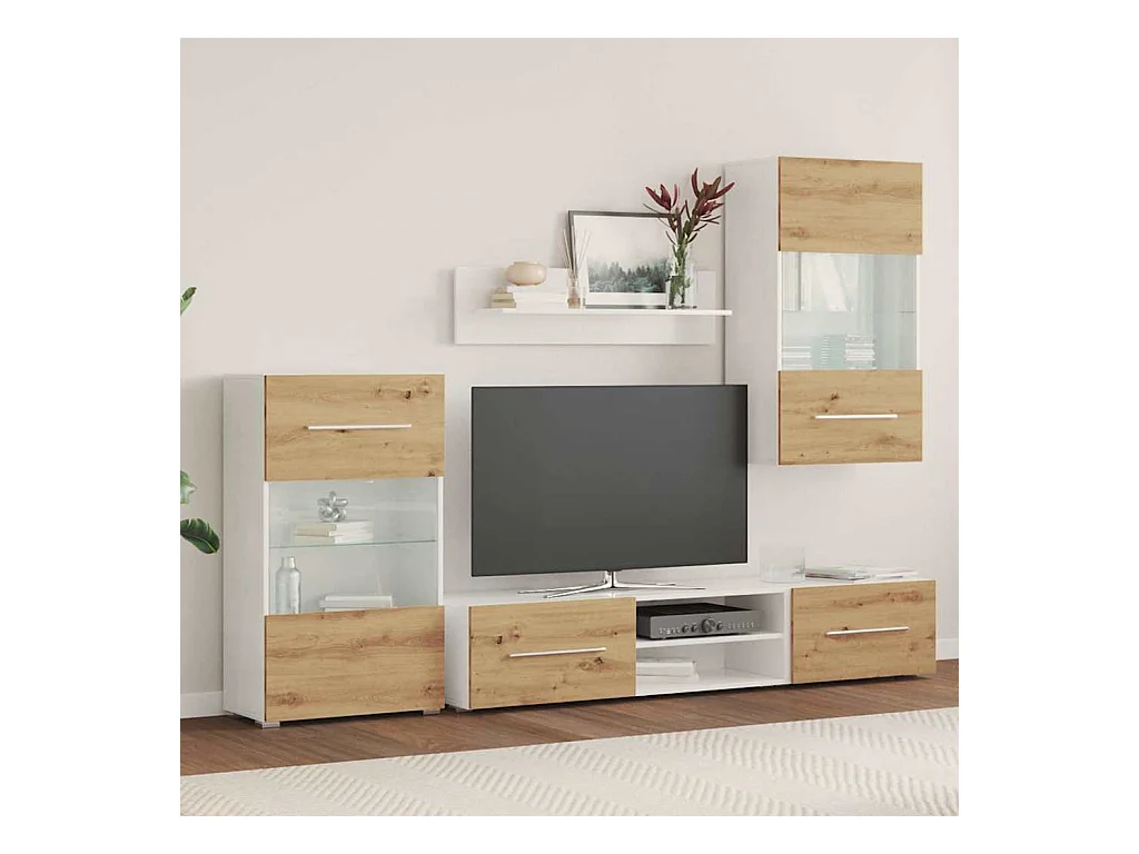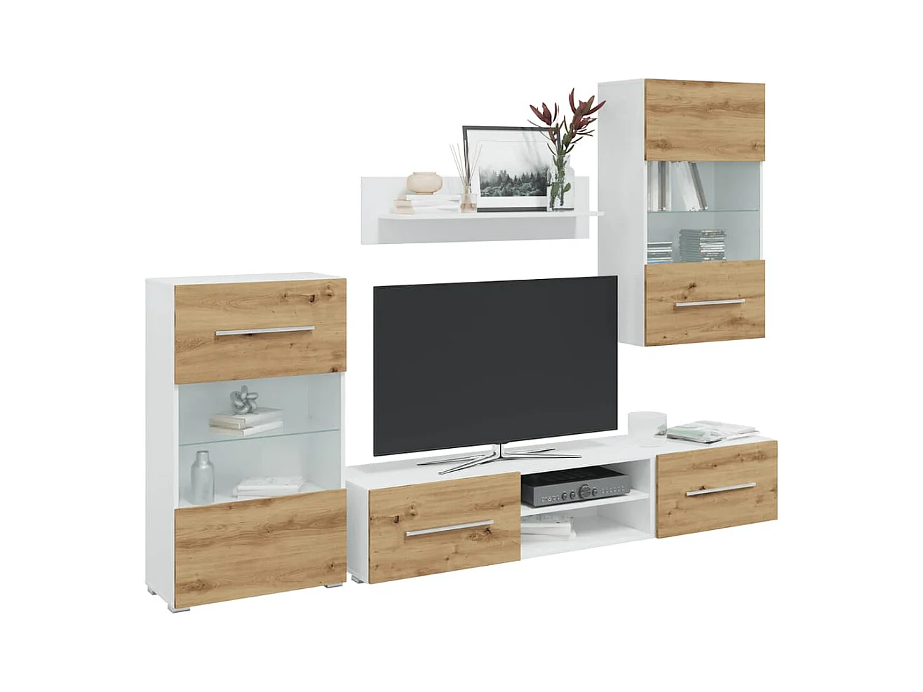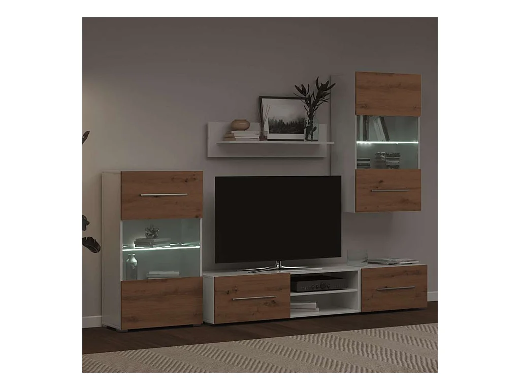 Meubles TV et lumière LED 5 pièces chêne artisanal bois ingénierie