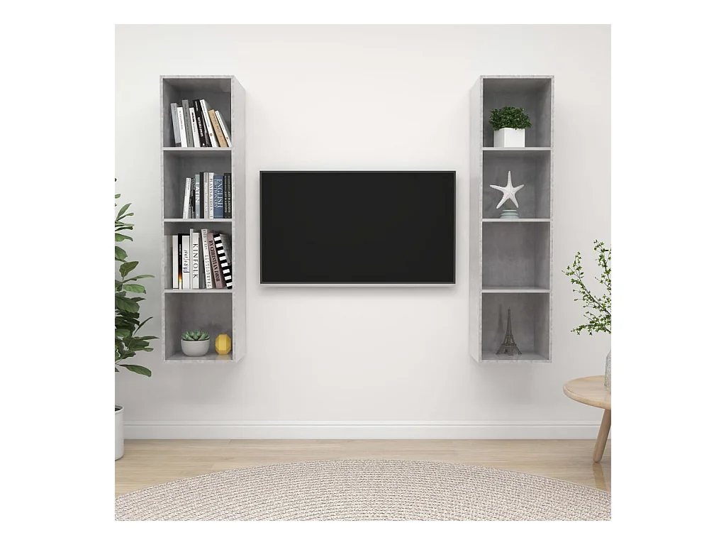 Meubles TV muraux 2 pcs Gris béton Bois d'ingénierie