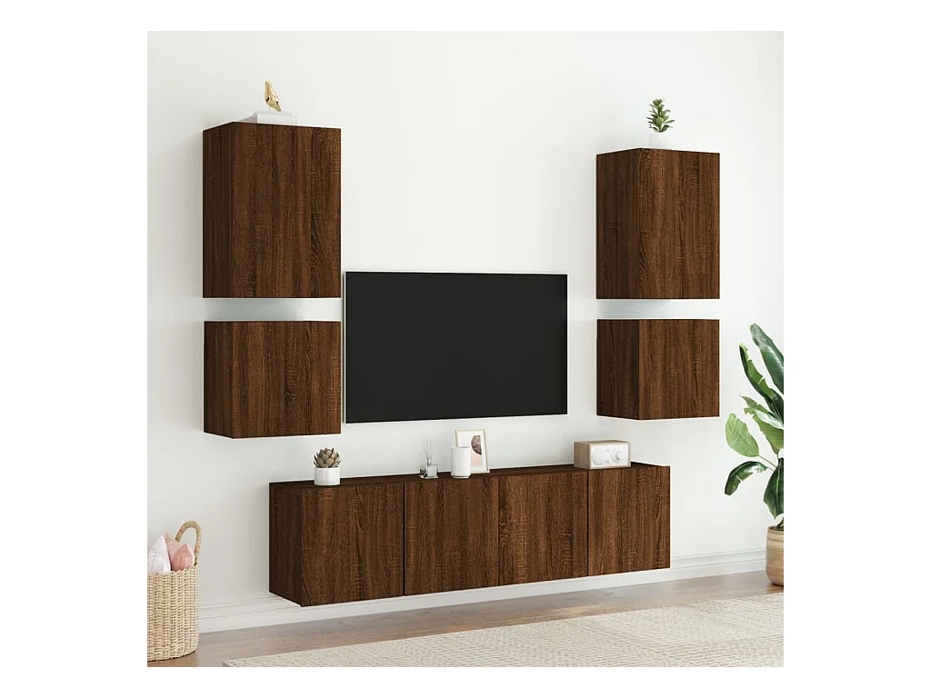 Meubles TV muraux lumières LED 2 pièces chêne marron 40,5x35x40 cm
