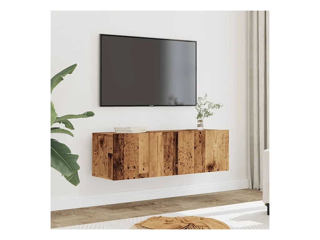 Meuble TV mural vieux bois 120x30x30 cm bois d'ingénierie