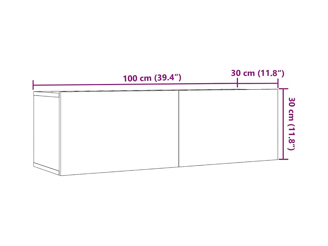 Meubles TV muraux 2 pièces chêne artisanal 100x30x30 cm