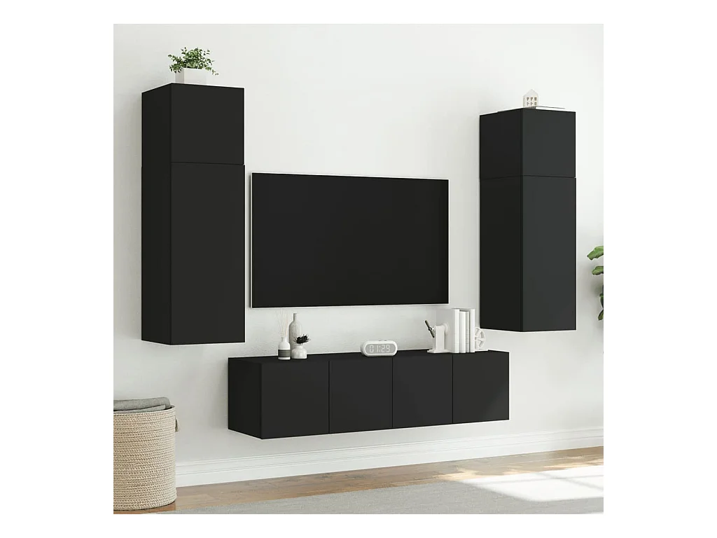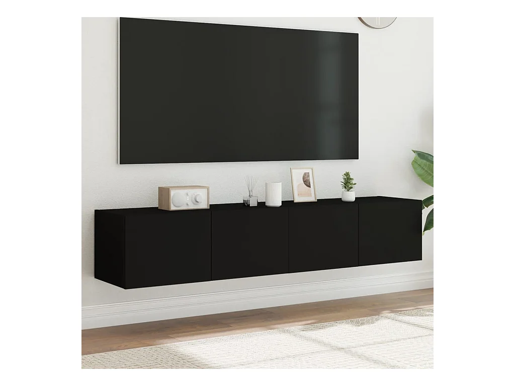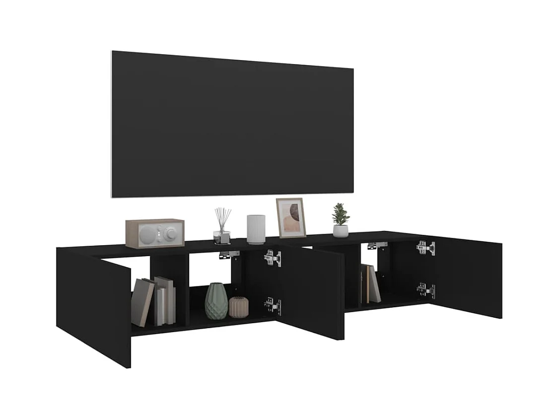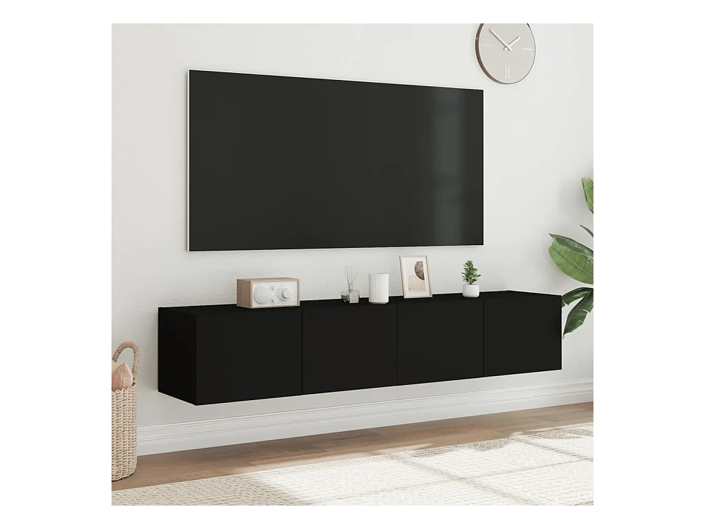 Meubles TV muraux avec lumières LED 2 pcs noir 80x35x31 cm