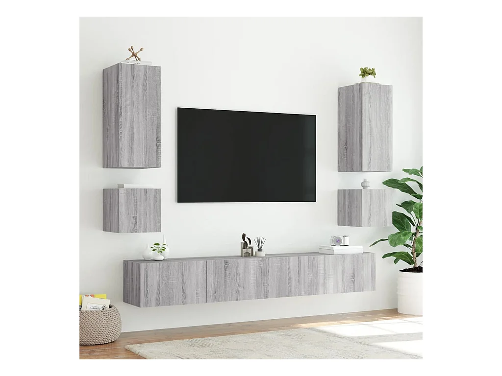 Meubles TV muraux et lumières LED 2pcs sonoma gris 40,5x35x40cm WET9575