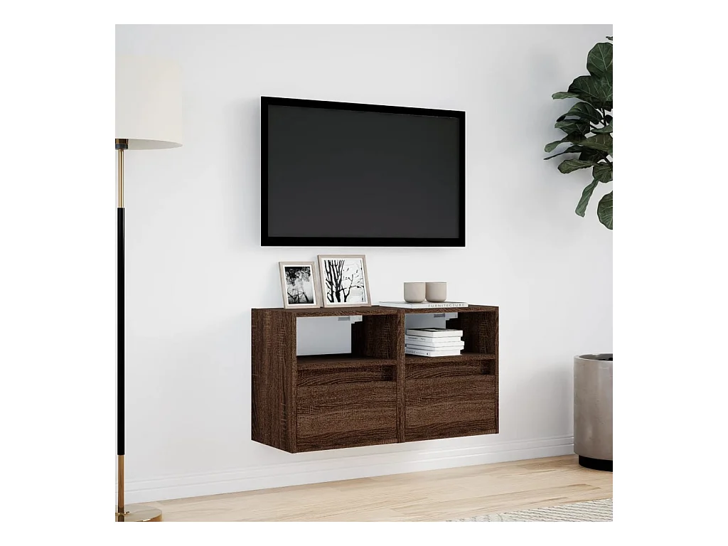 Meuble TV mural avec lumières LED chêne marron 41x31x45 cm