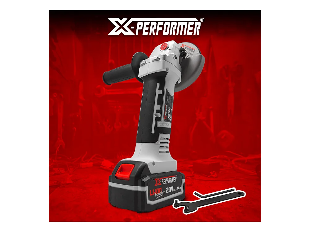 Meuleuse d’angle sans fil 20V – 115 mm avec batterie 4Ah et chargeur rapide 2H – X-Performer