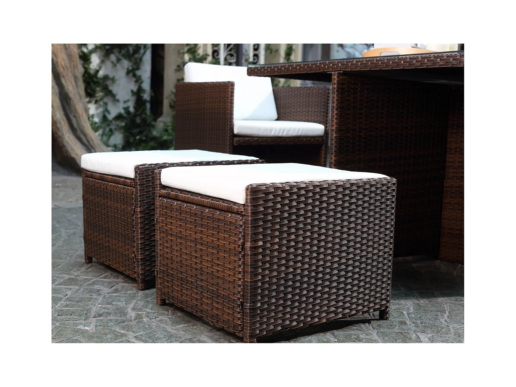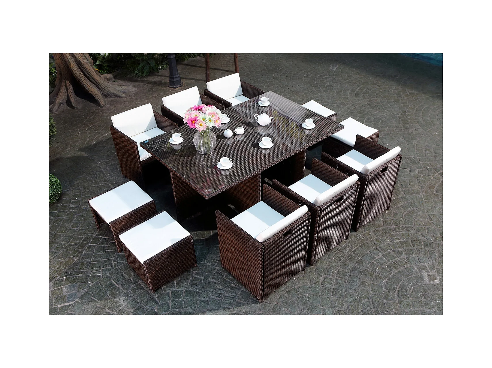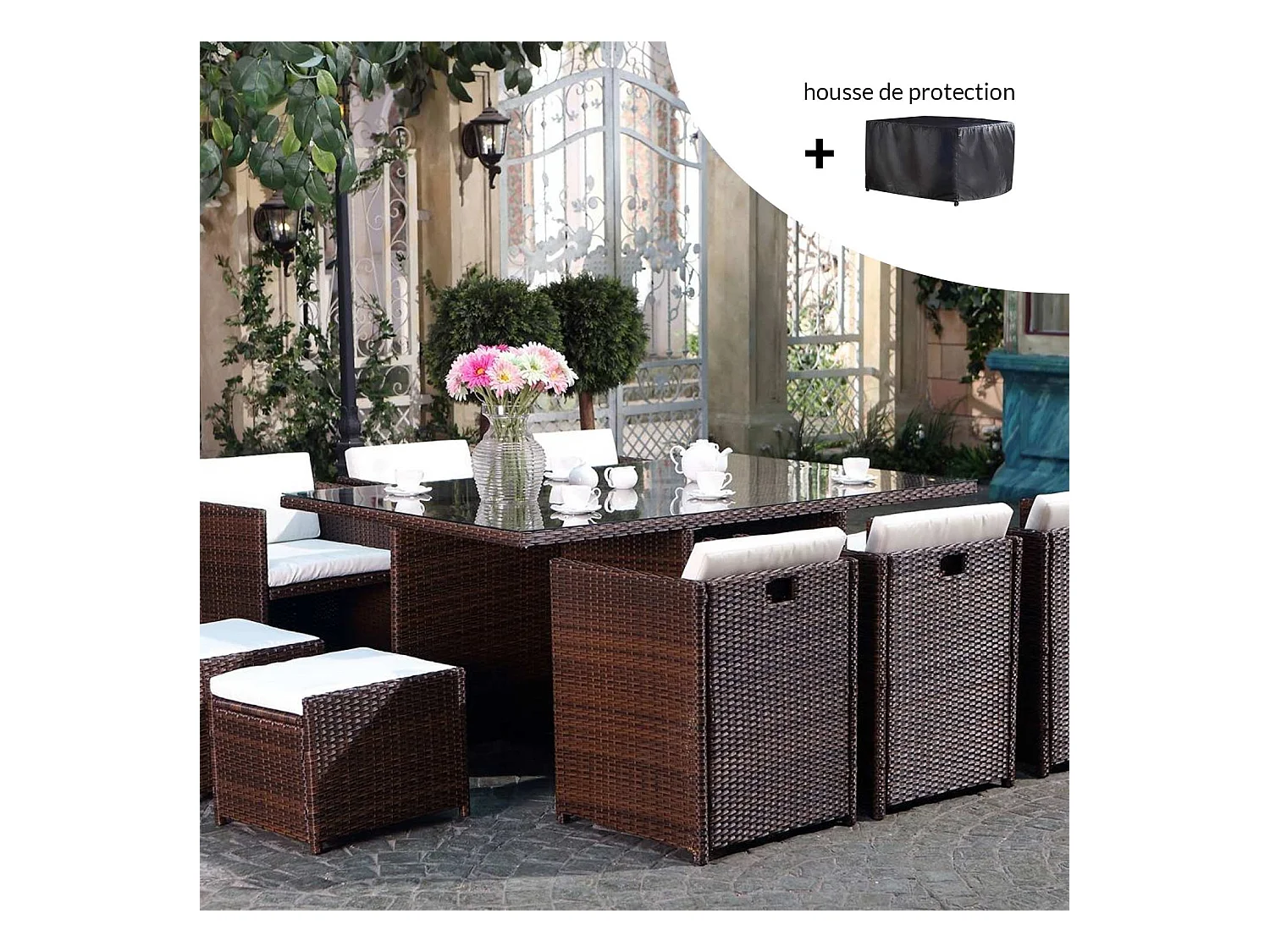 salon de jardin panoramique 8 places en résine tressée marron et blanc SALENTO