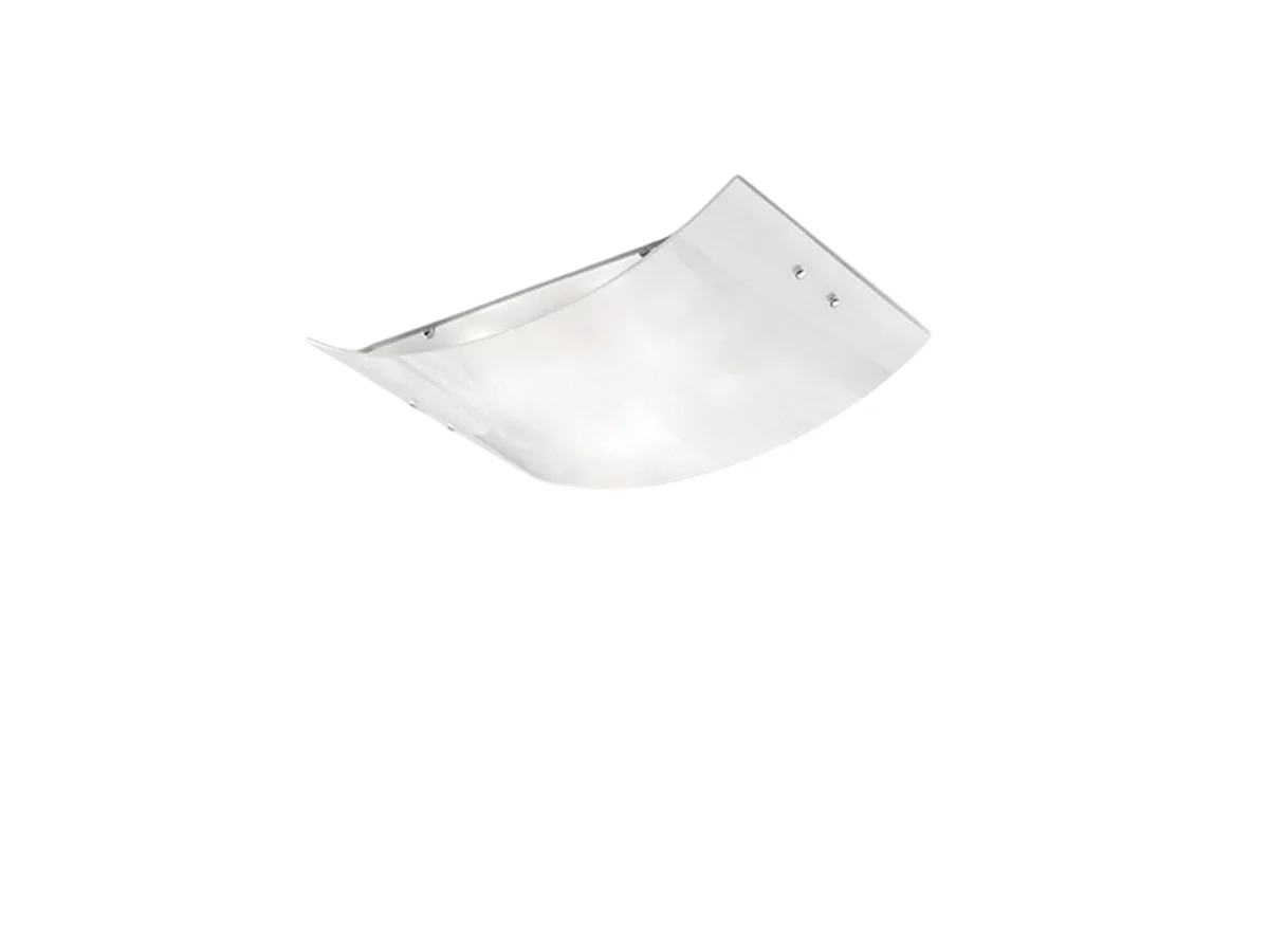 Michela grand plafonnier 45x30cm blanc brillant 2XE27, verre bombé avec base chromée, max 2x52W, plafonnier élégant