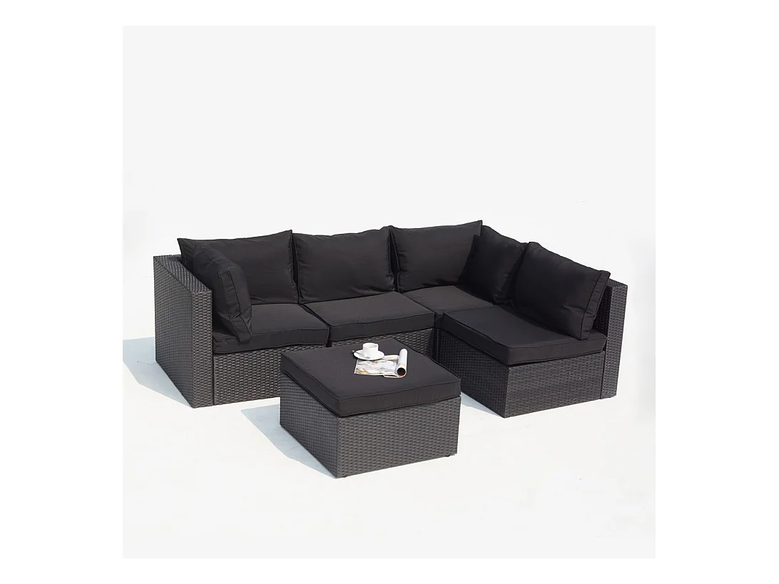 Salon de jardin modulable 5 places en résine tressée noir MILANO