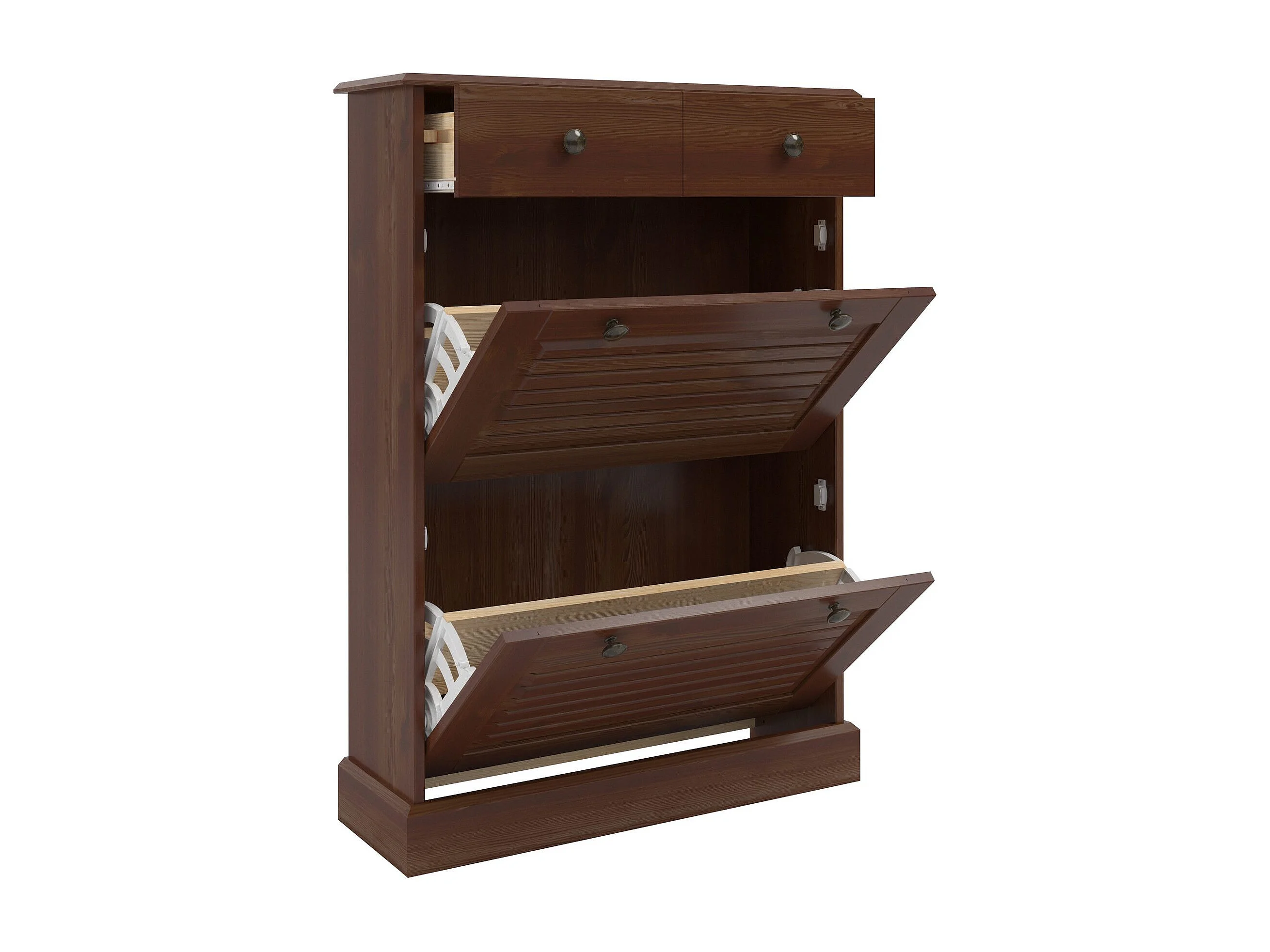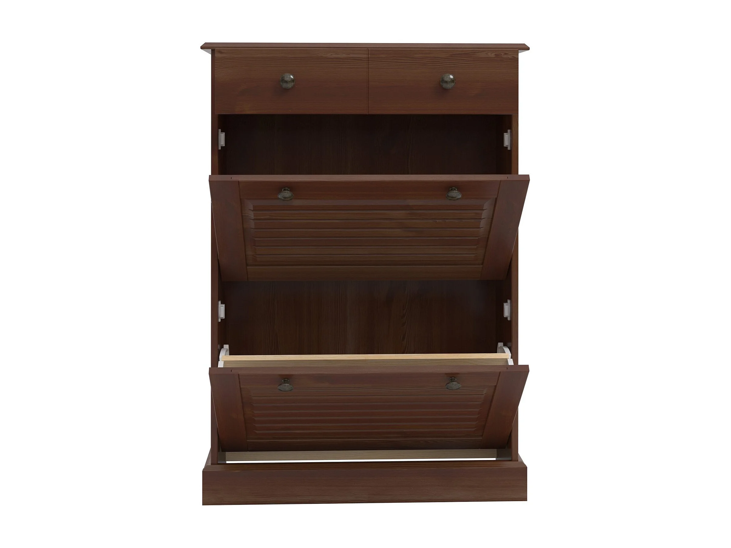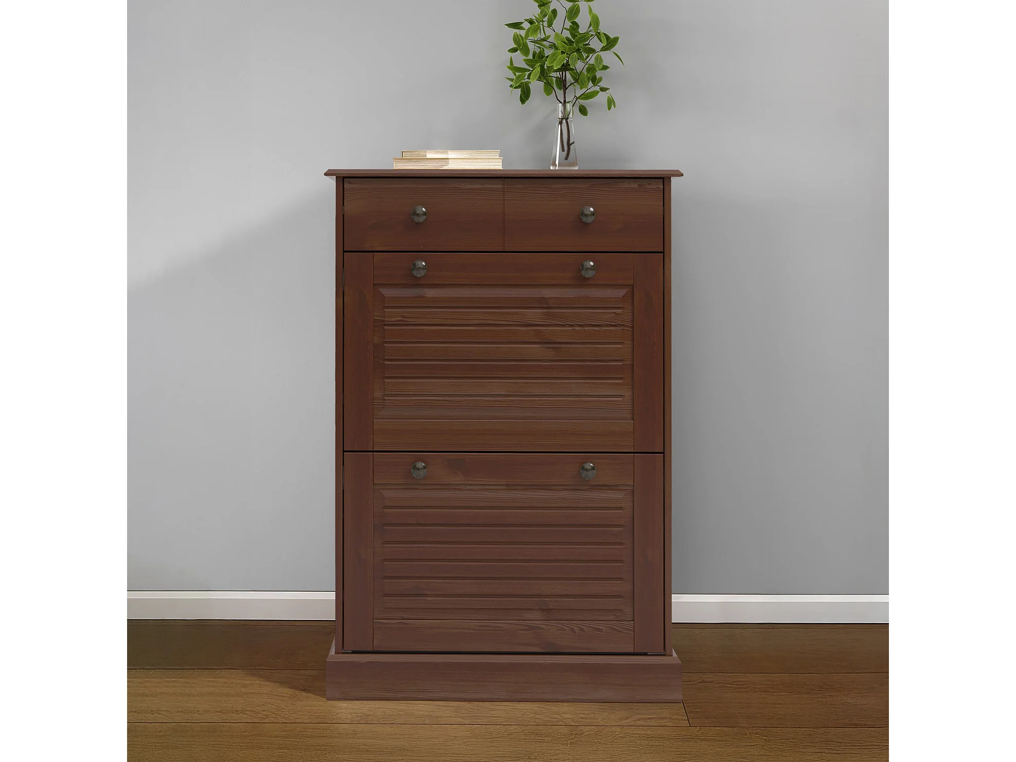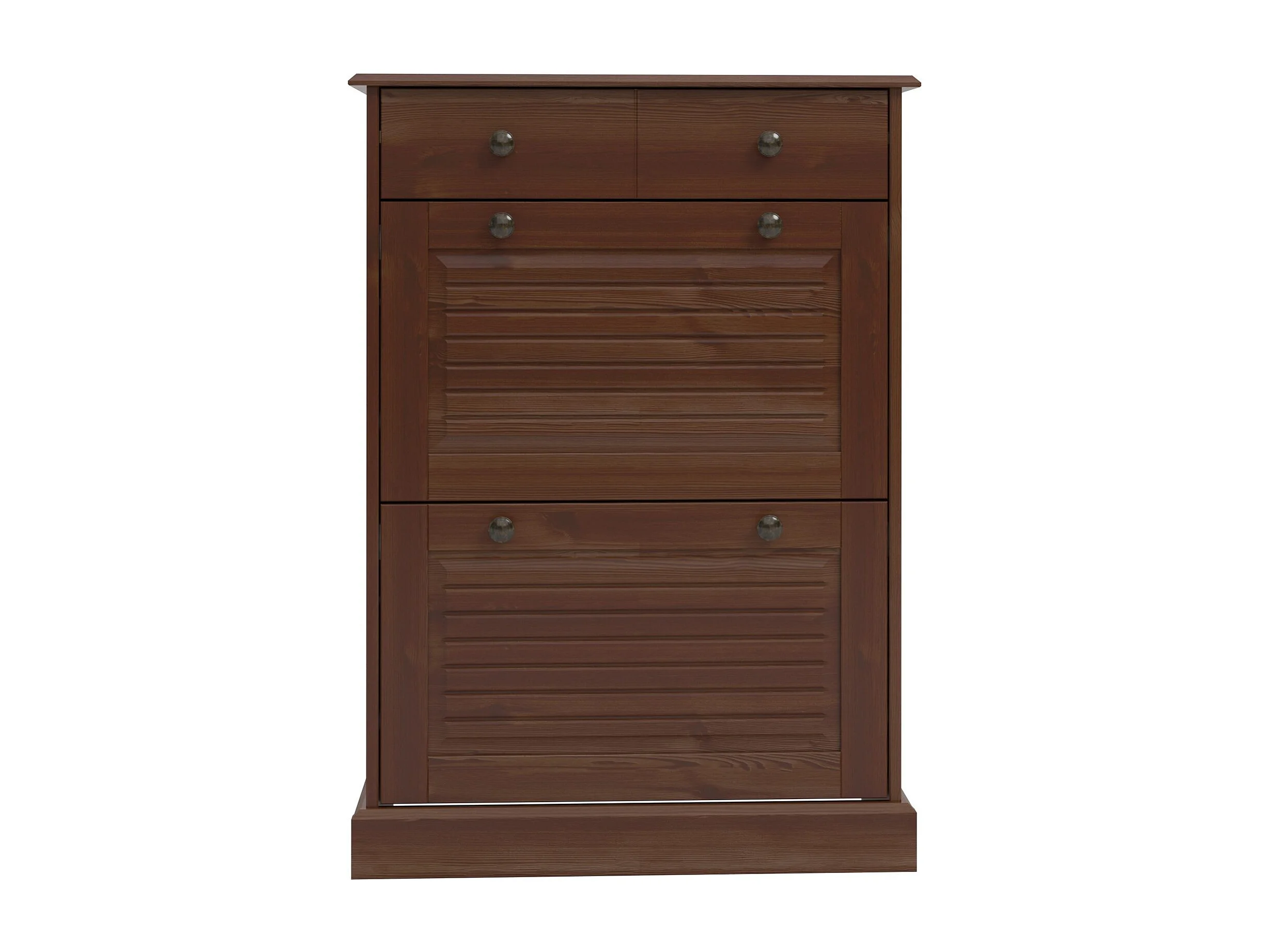Mille | Coffre à chaussures avec 2 portes à rabat et 1 tiroir en brun sapin