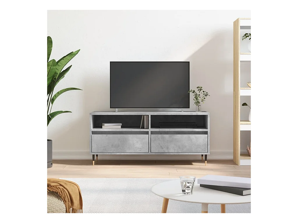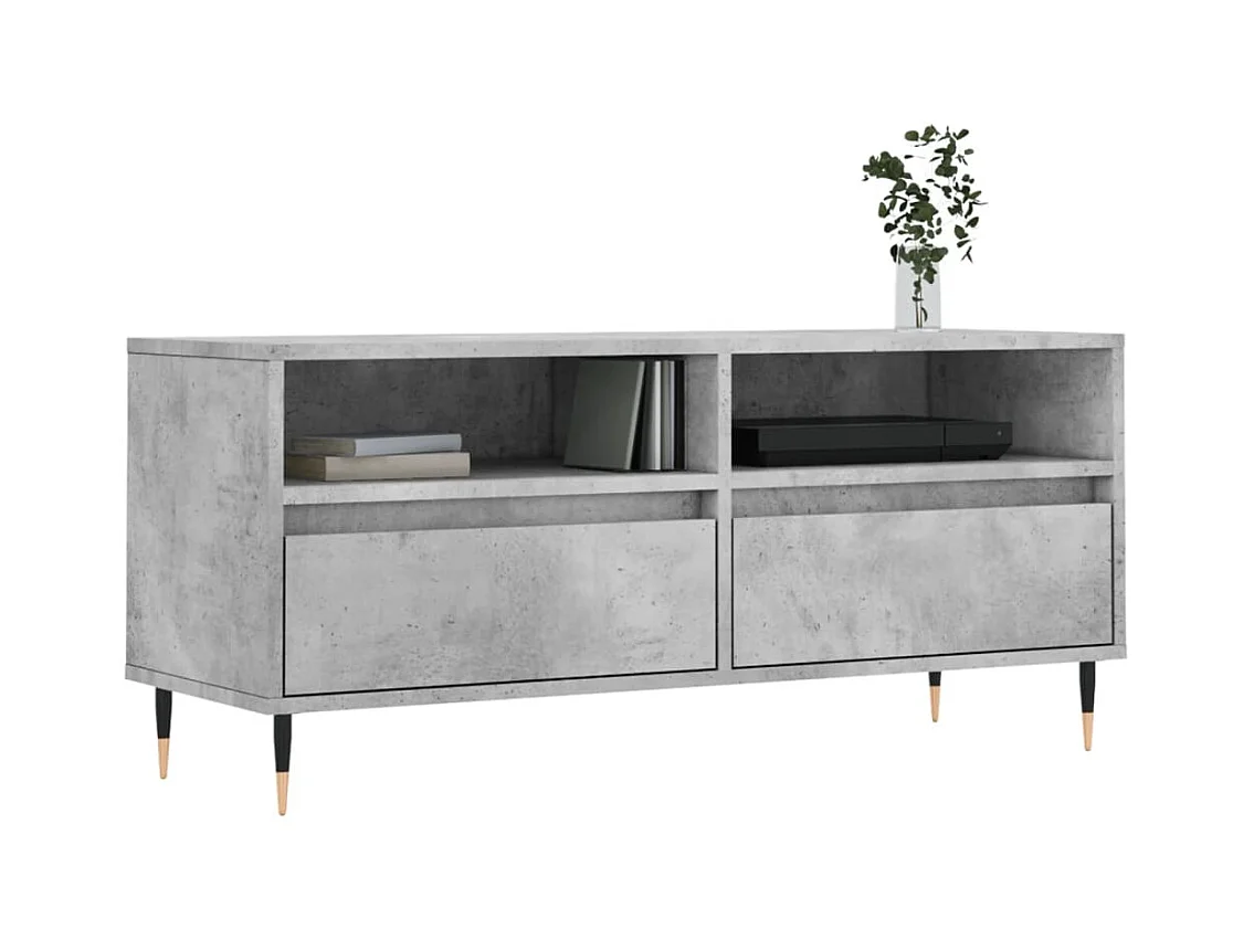 Lin Meuble TV gris béton 100x34,5x44,5 cm bois d'ingénierie