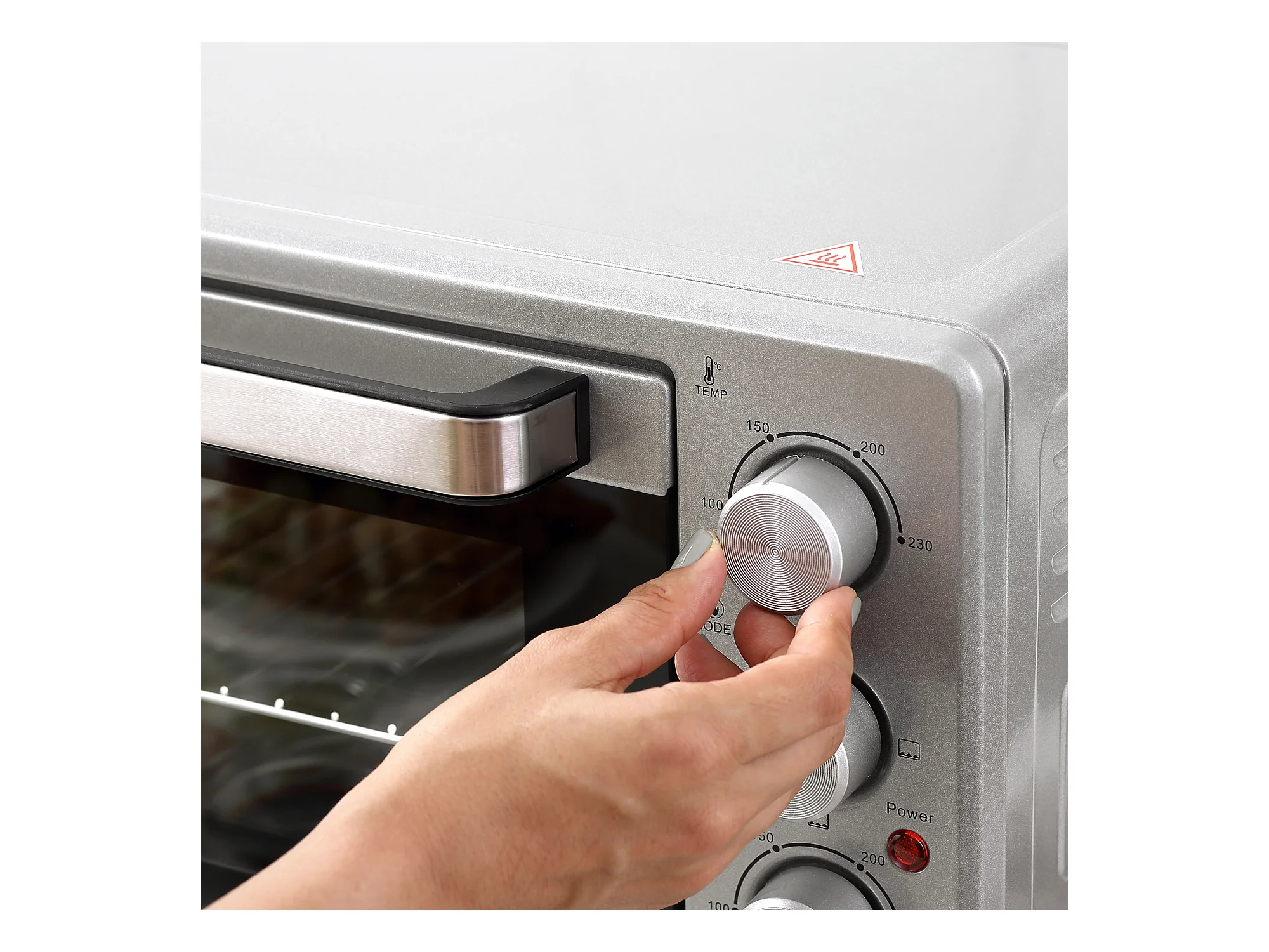 Mini four 21L 1400W, 3 modes de cuisson, température réglable 100-230°C, inox & verre, gris (46.4x38x28.5cm)