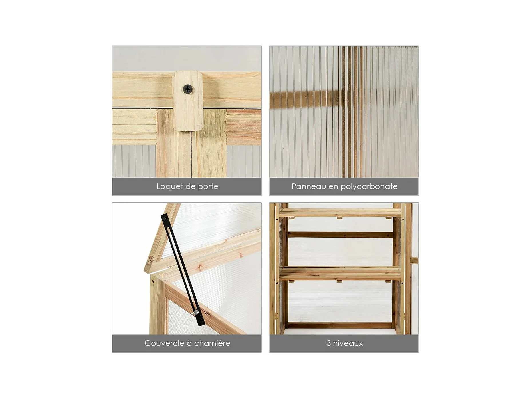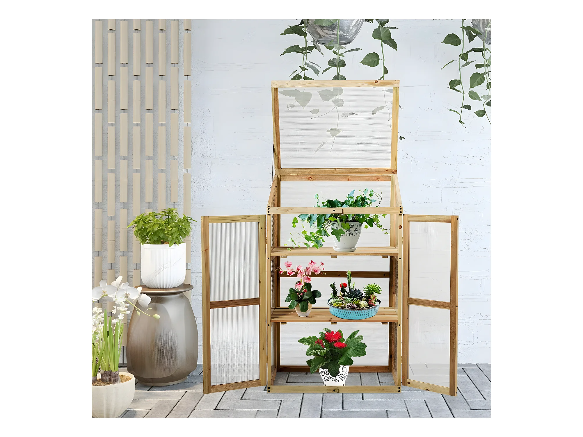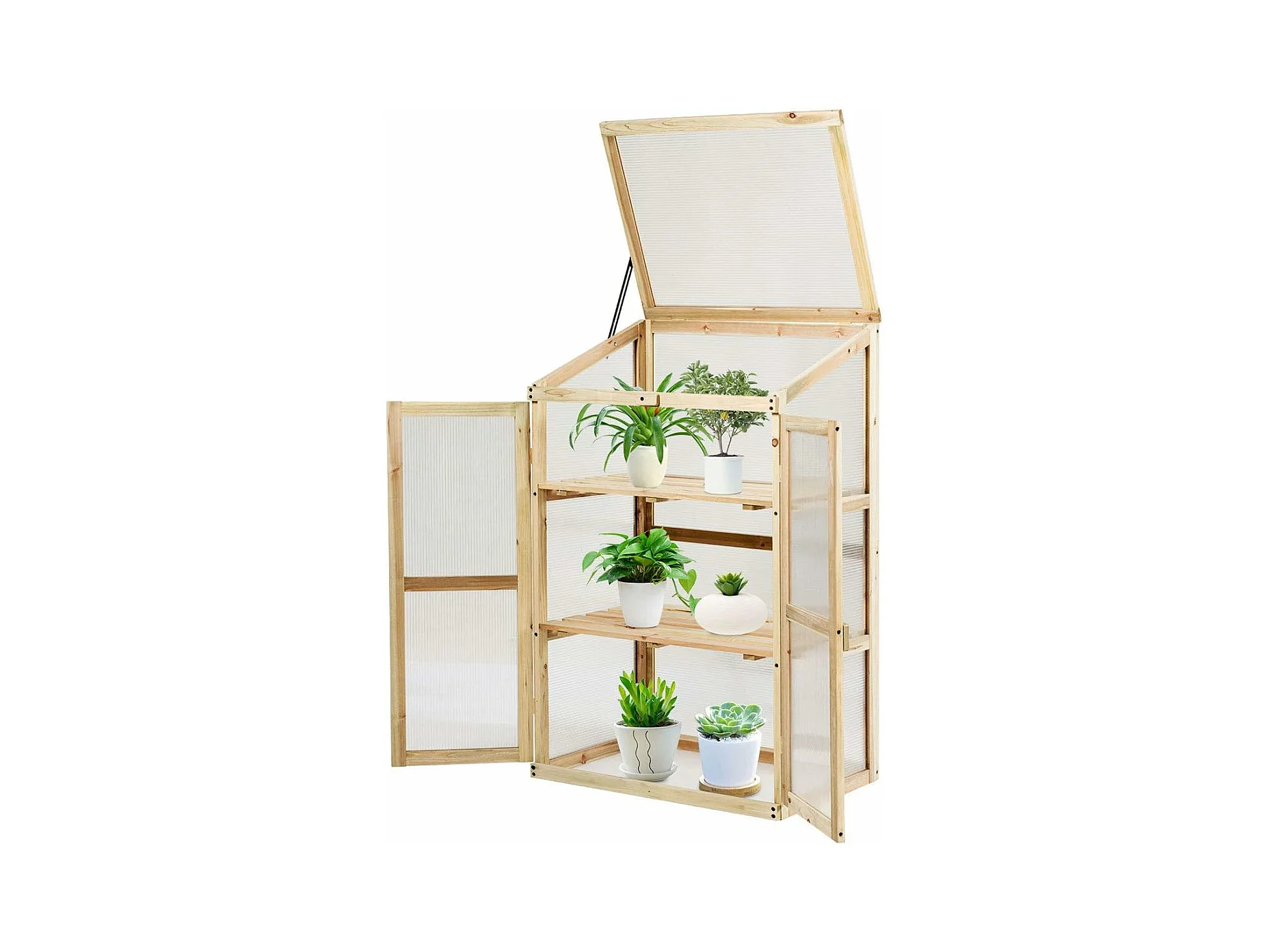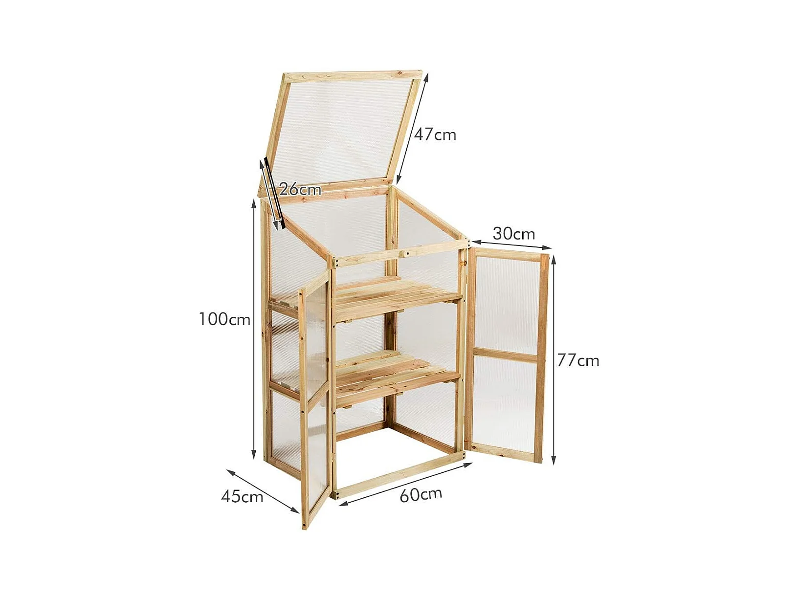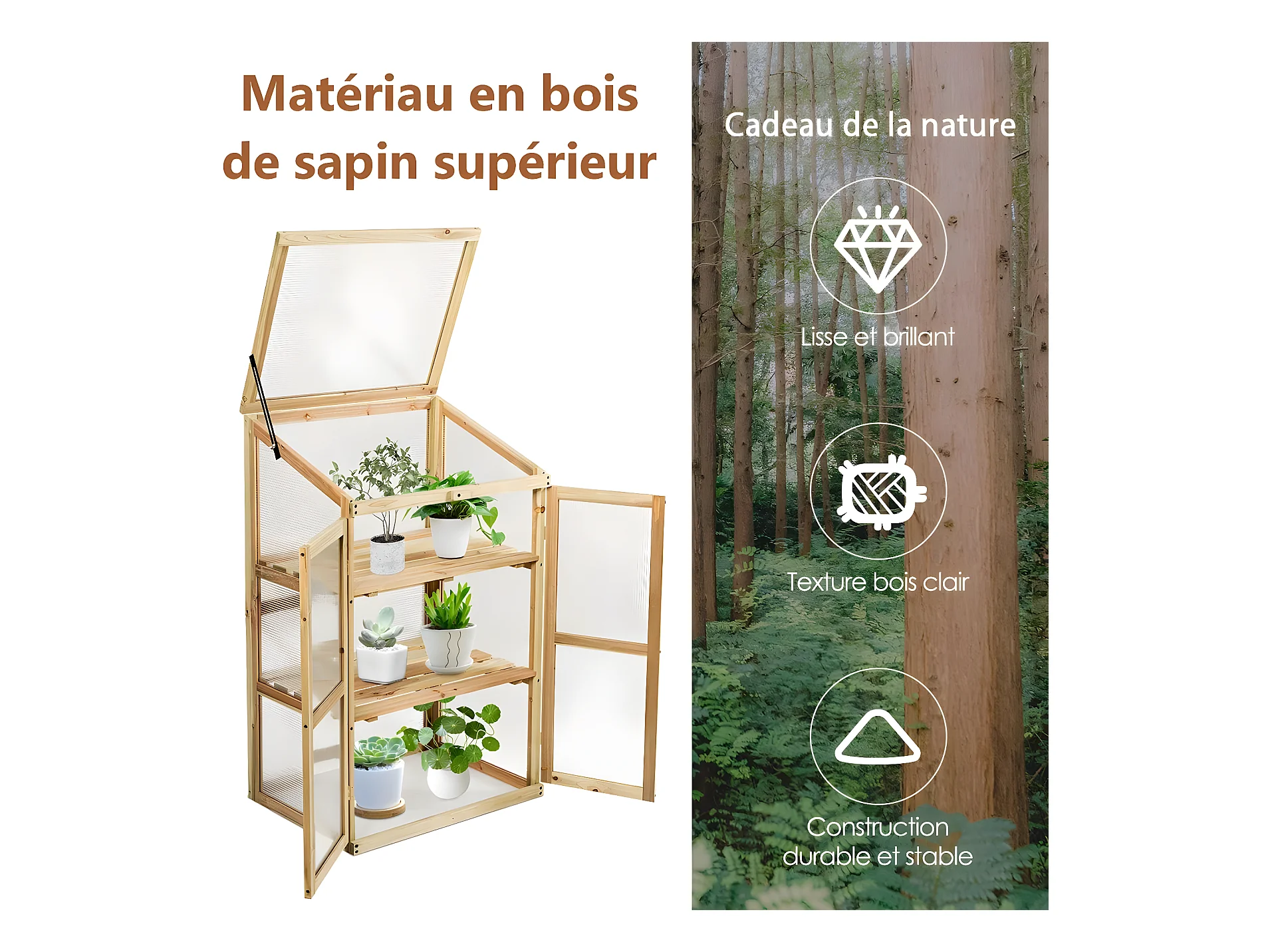 Mini Serre de Jardin 60x45x100CM Vitrages Transparents en Polycarbonate avec Etagères à 3 Niveaux pour Jardin/Balcon/Porche