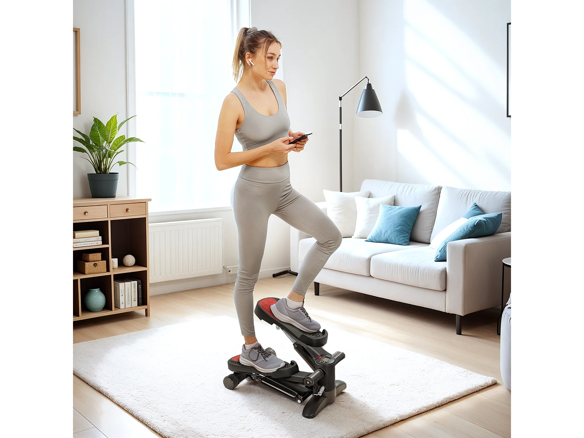 Mini-stepper avec écran LCD, compact, acier, noir (44.5x29x20 cm)