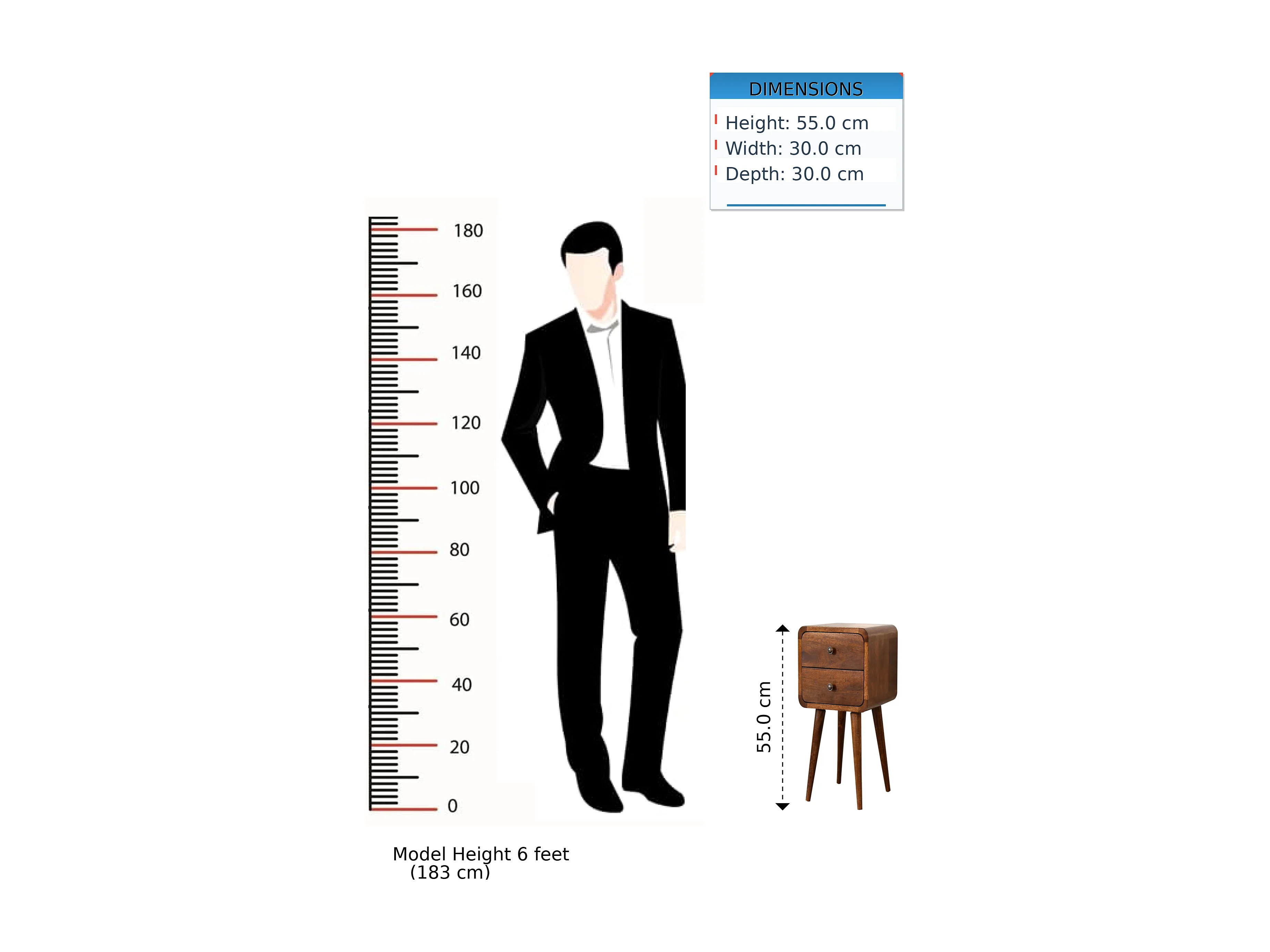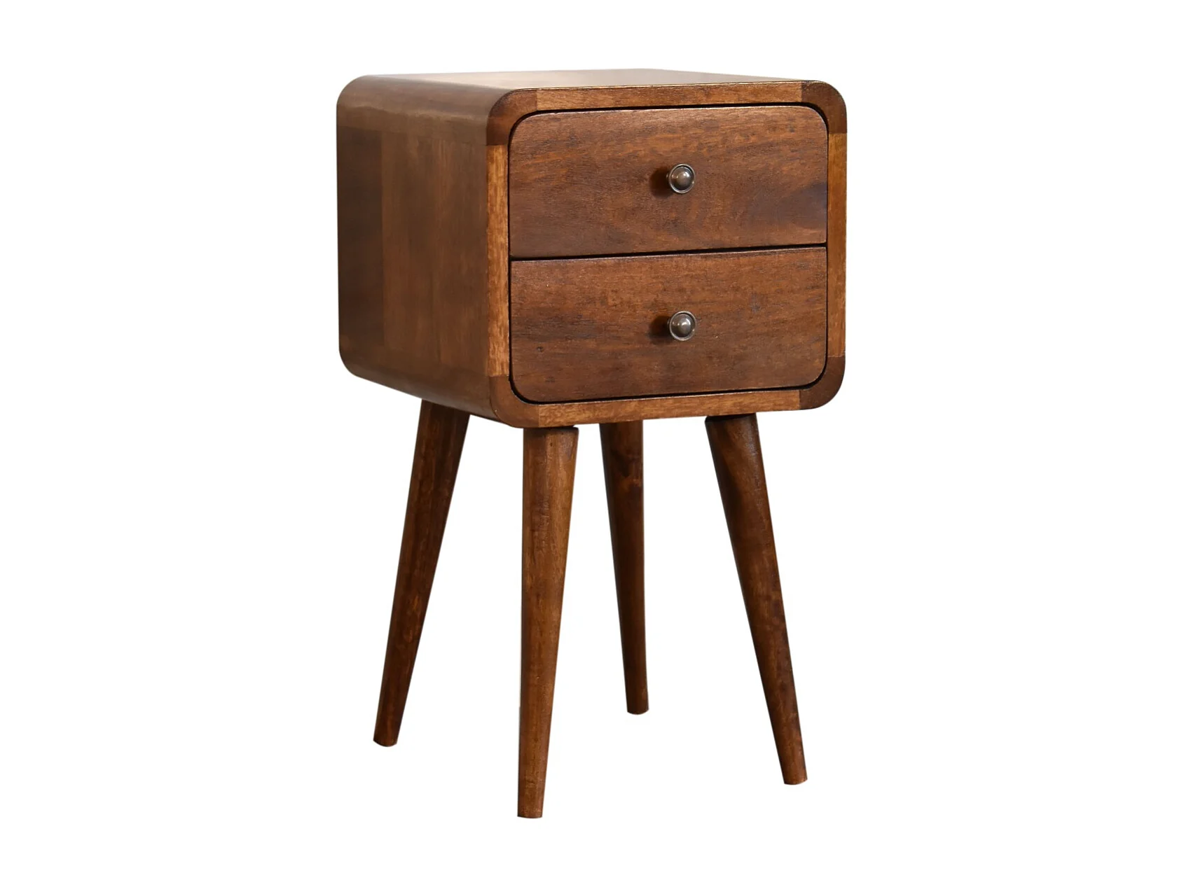 Table de chevet Mini courbée en châtaignier Artisan Furniture, 2 tiroirs, marron