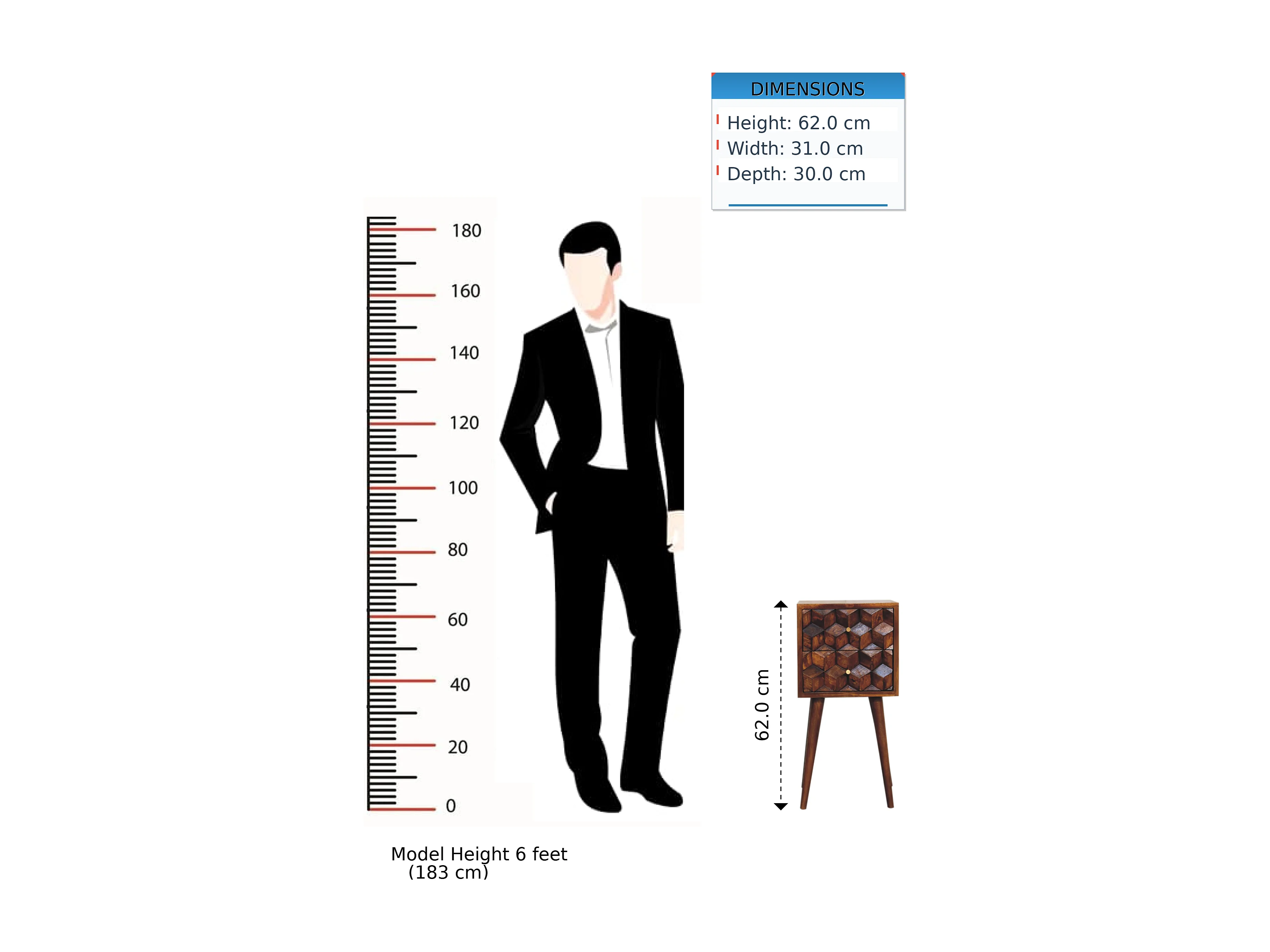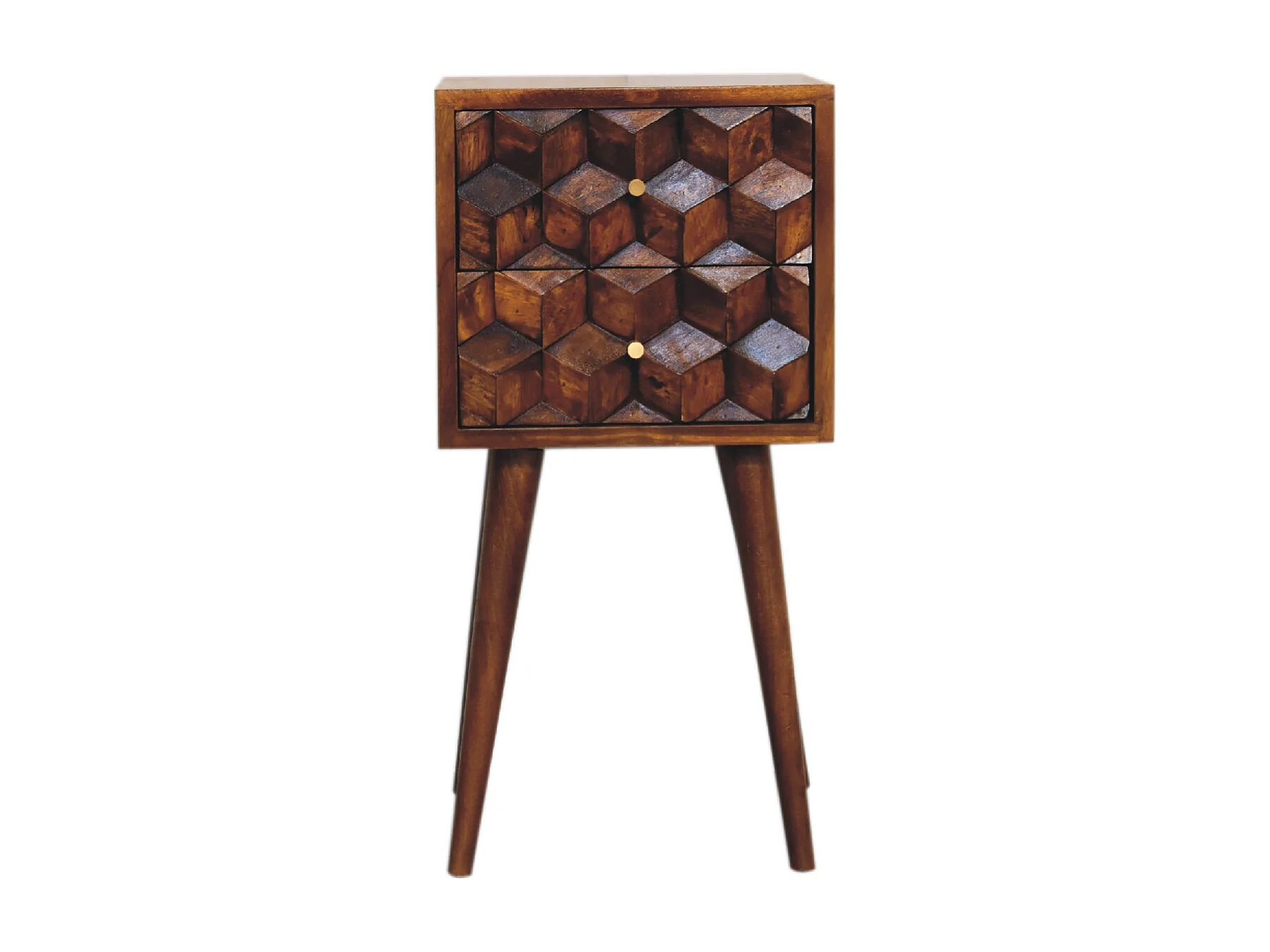 Table de chevet Mini Cube en châtaignier Artisan Furniture, 2 tiroirs, marron